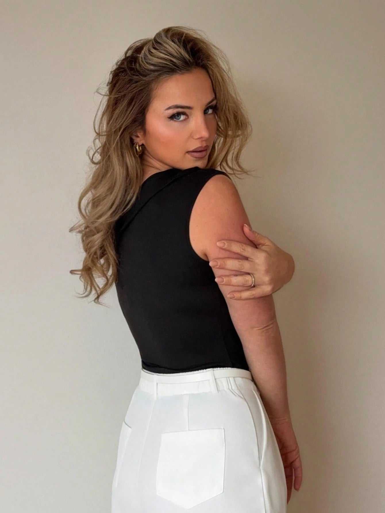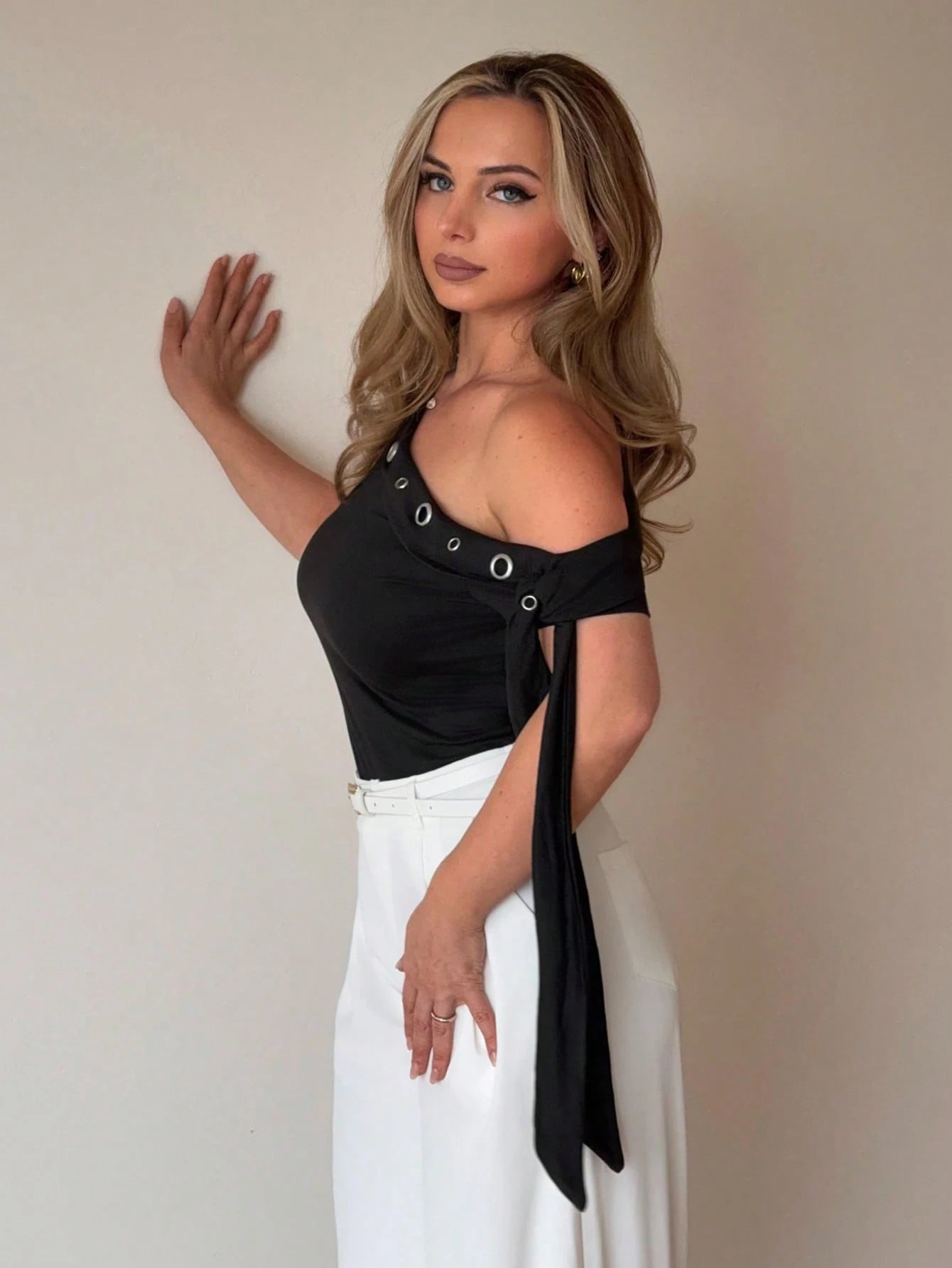 ASYMMETRIC SLEEVELESS METAL EYELET DECOR TOP