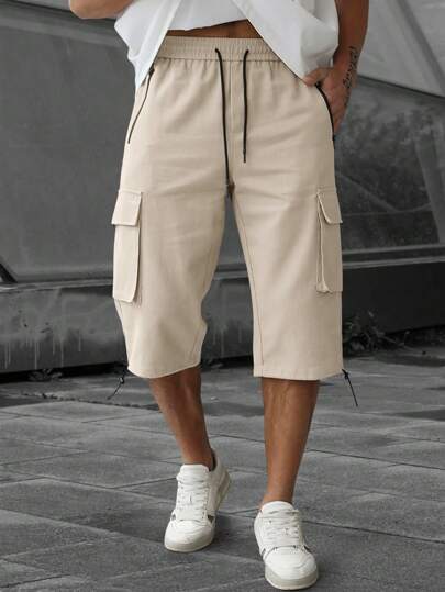 BEIGE FLIP POCKET DRAWSTRING WAIST SHORTS