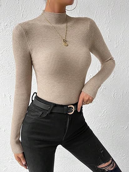 CASUAL RIBBED LONG SLEEVE PULLOVER SLIM FITTED KNIT TOP