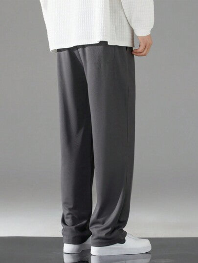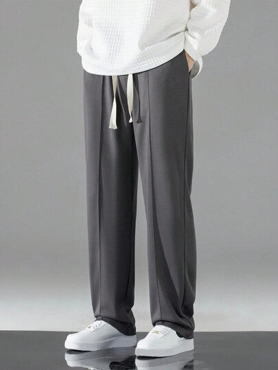 CHARCOAL MEN DRAWSTRING WAIST STRAIGHT LEG PANTS