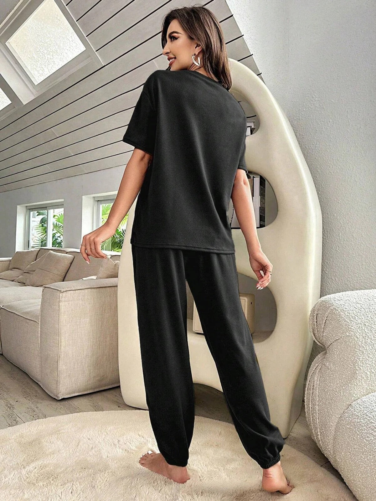 LETTER GRAPHIC DROP SHOULDER TEE & DRAWSTRING WAIST PANT