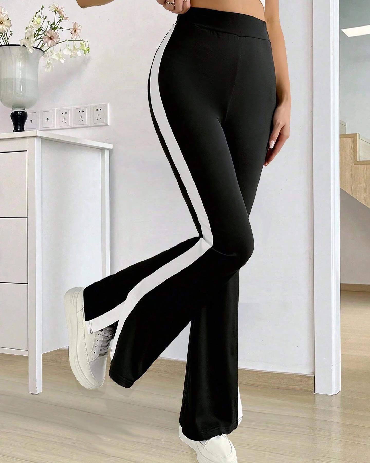 CONTRAST SIDE SEAM SPLIT HEM TROUSERS