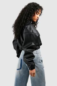 Keep things casual but always on-trend with a piece of outerwear perfection, the bomber jacket. A light jacket featuring a gathered, ribbed waistband and matching cuffs, a bomber jacket is versatile, timeless, and the perfect way to edge up your casual wear. Wear your new women's bomber jacket with a shirt and stripe joggers for the hottest look of the moment: sports luxe, or layer a varsity jacket over a t shirt dress for a fresh new-season look. Style: Bomber Jacket Fabric: Faux Leather Sleeve Length: Long Sleeve