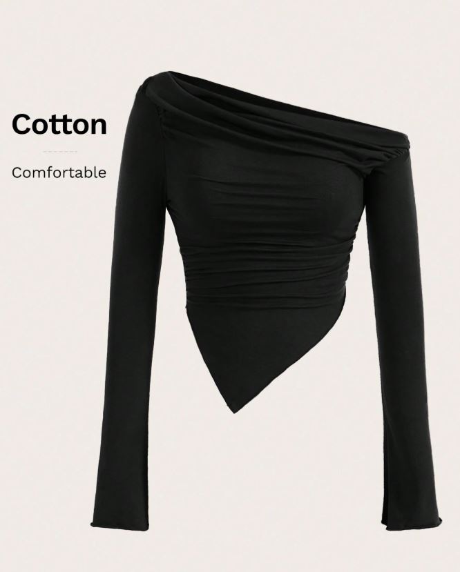 Details:Asymmetrical, Lettuce Trim, Ruched