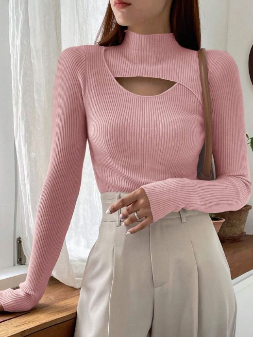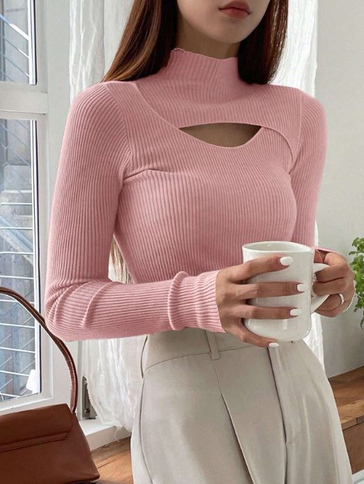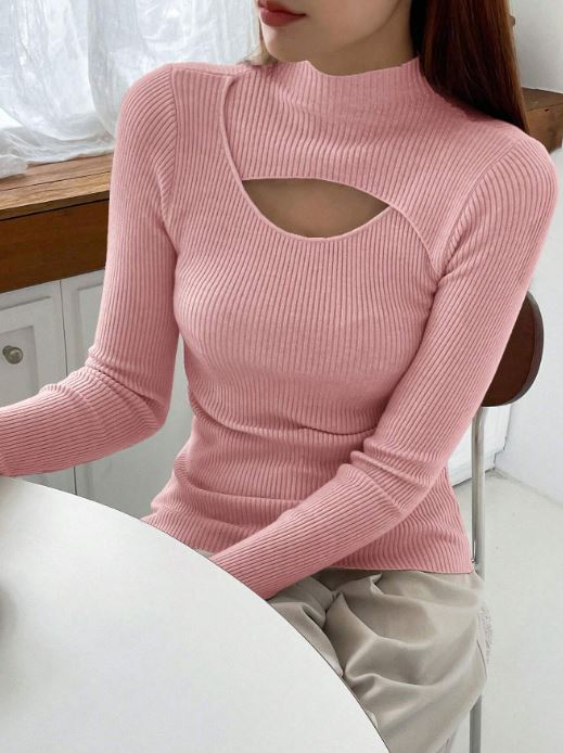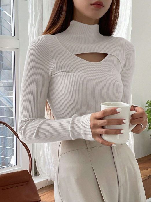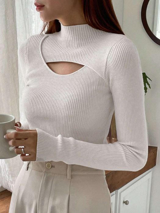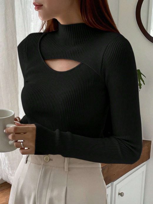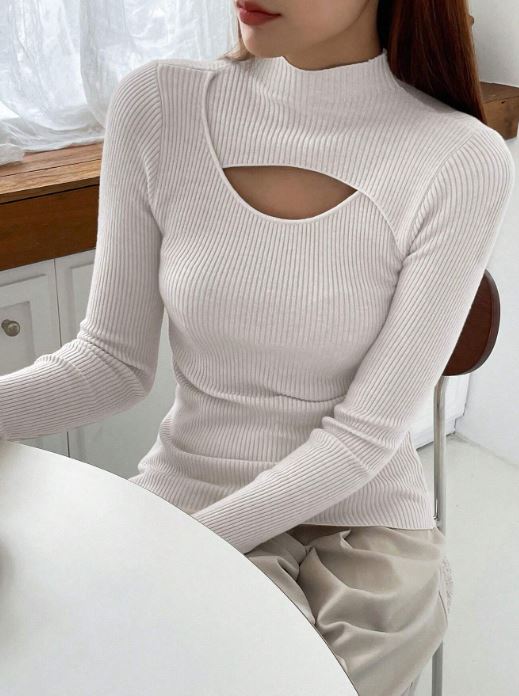 Details:            Cut Out, Rib-Knit