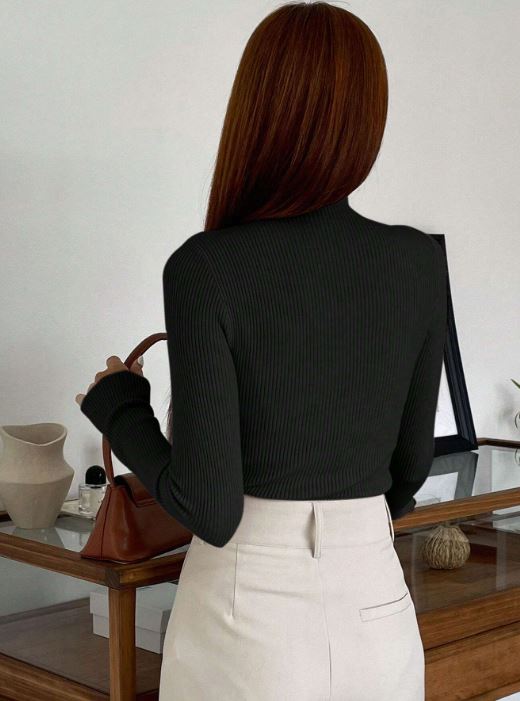 CUT OUT MOCK NECK RIBBED KNIT TEE