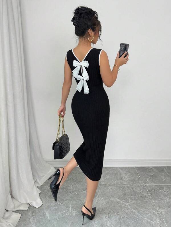 Elegant Sleeveless Backless Dress With Bowknot Design