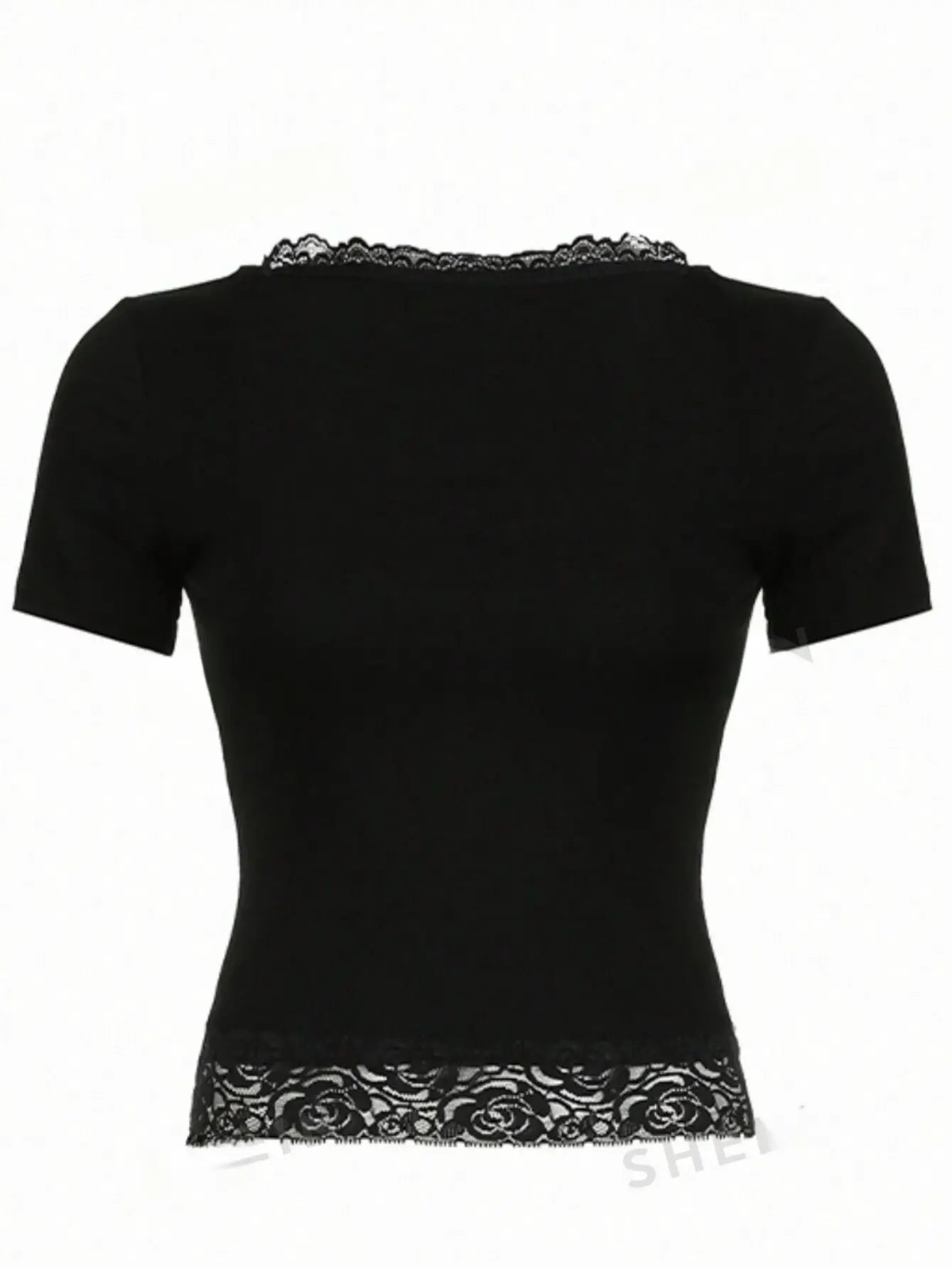 ESSNCE SUMMER SHORT LACE SPLICE TIGHT FASHION TOP