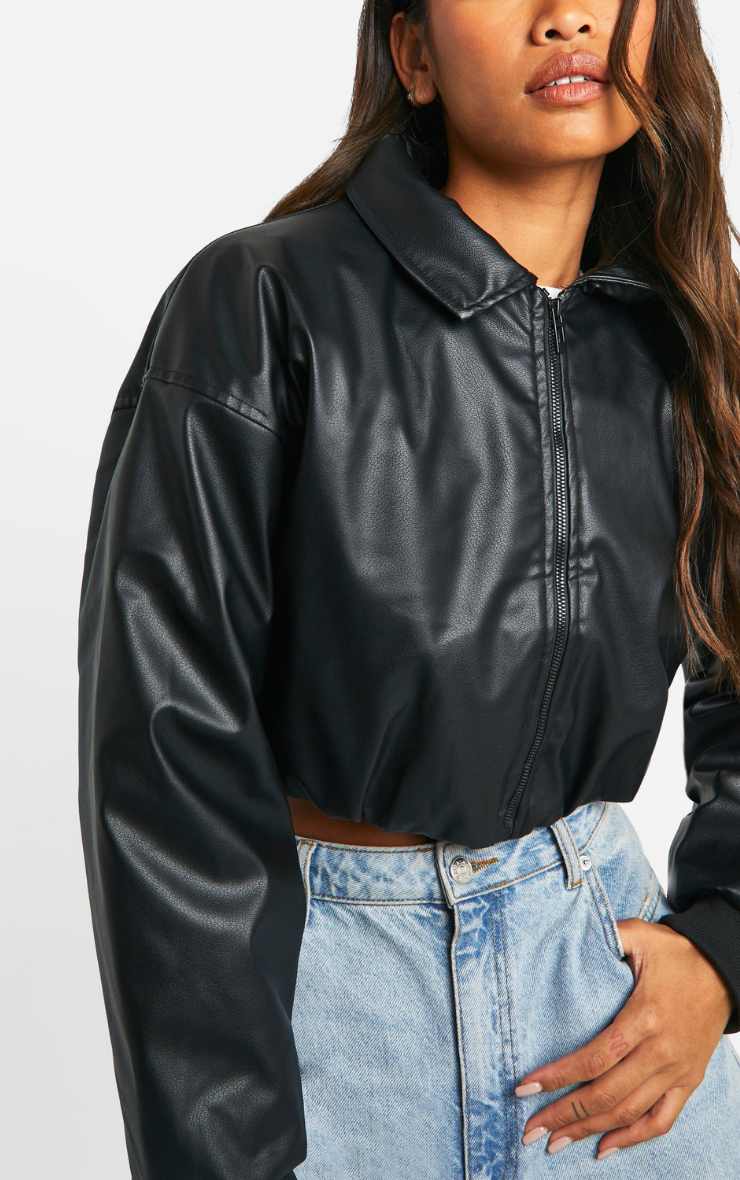 FAUX LEATHER CROPPED COLLAR DETAIL JACKET