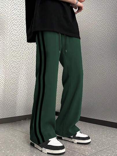 FOREST GREEN MEN'S COLOR BLOCK STRAIGHT STRIPED PANTS