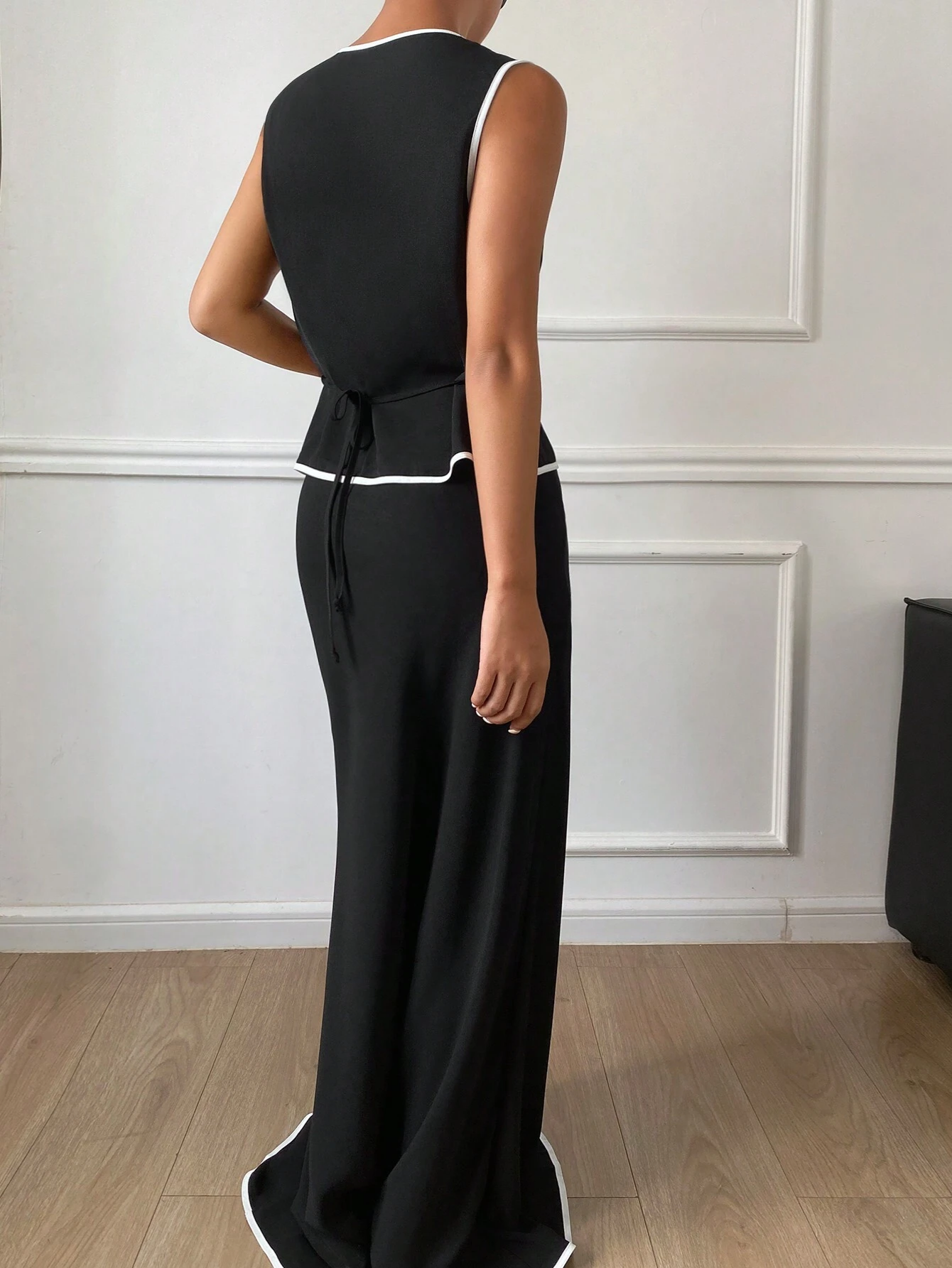 FRENCHY 2PCS WOMEN CONTRAST TRIM SLEEVELESS TOP & LONG SKIRT SET