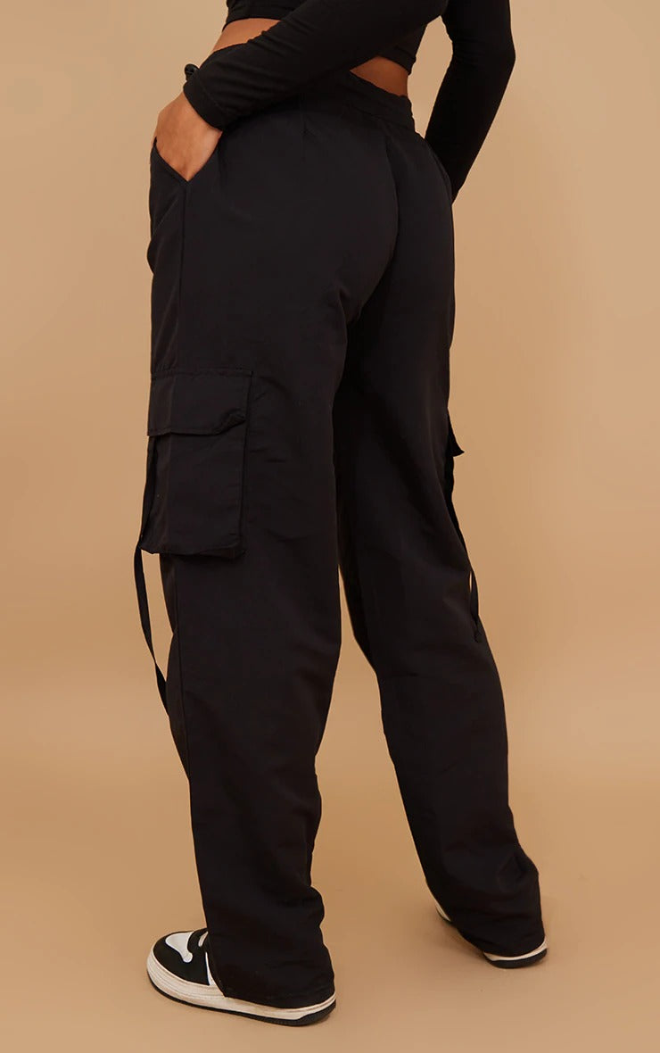 Make an edgy statement with these cargos doll. Featuring a black lightweight shell material with a low rise design and a cargo style, we're obsessed. Pair with a black crop top, biker jacket and box-fresh kicks for an insta-worthy combo.
