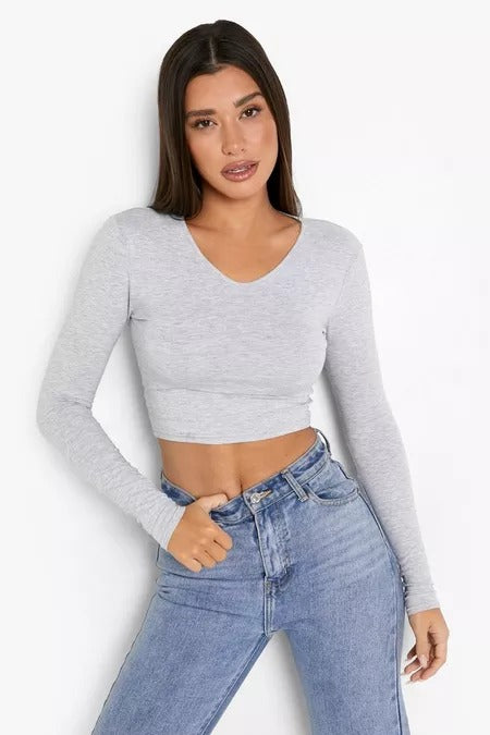 LONG SLEEVE V NECK TOP-SIZE CHART