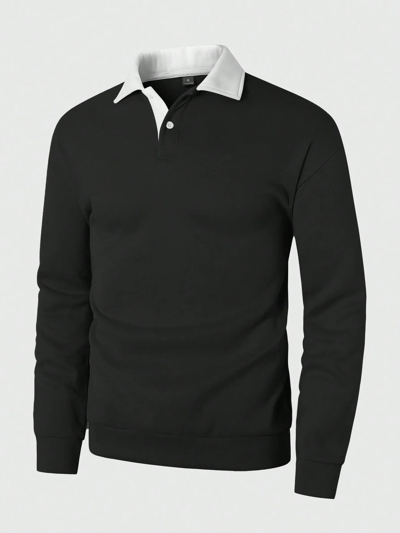 LOOSE FIT MEN'S COLOR BLOCK POLO LONG SLEEVE SWEATSHIRT