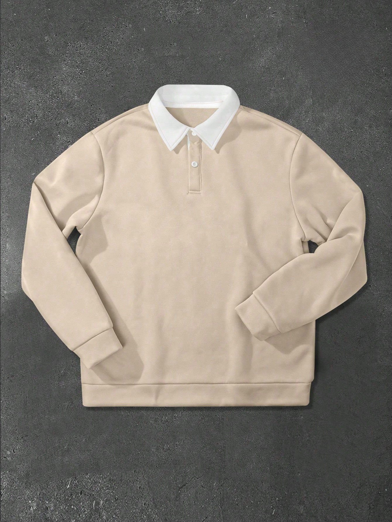 LOOSE FIT MEN'S CONTRAST COLLAR POLO NECK SWEATSHIRT