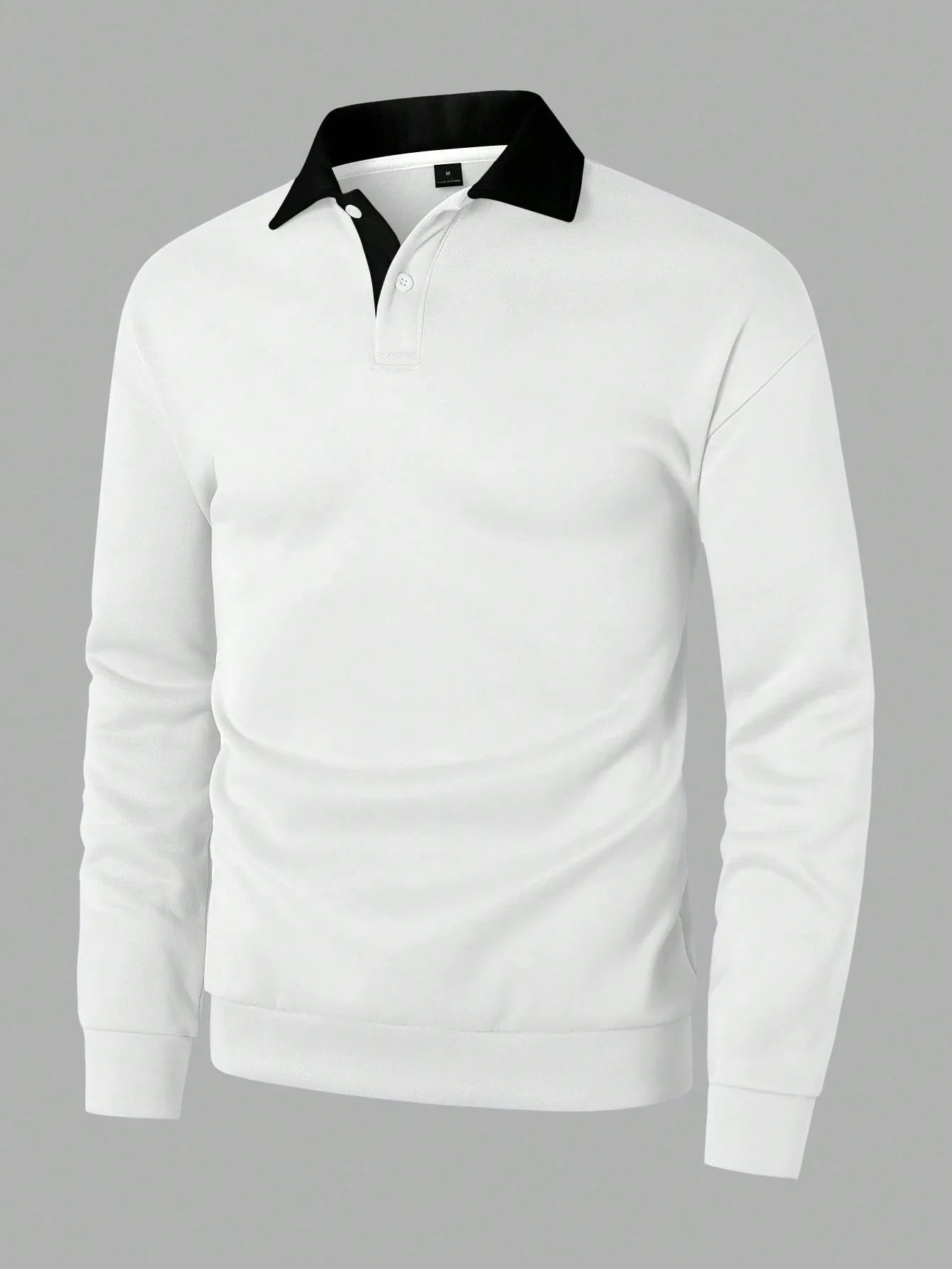 LOOSE FIT MEN'S CONTRAST COLLAR POLO NECK SWEATSHIRT