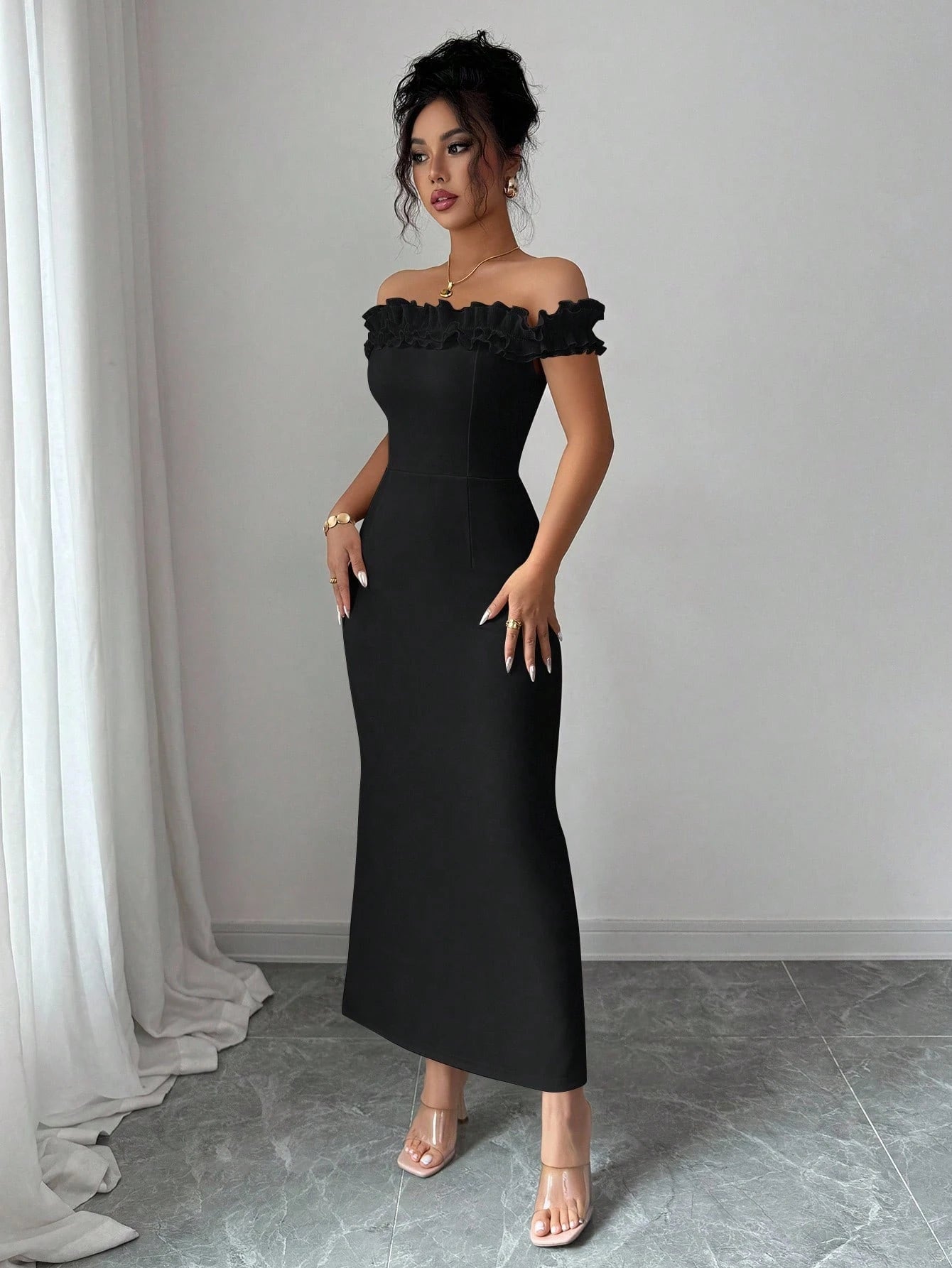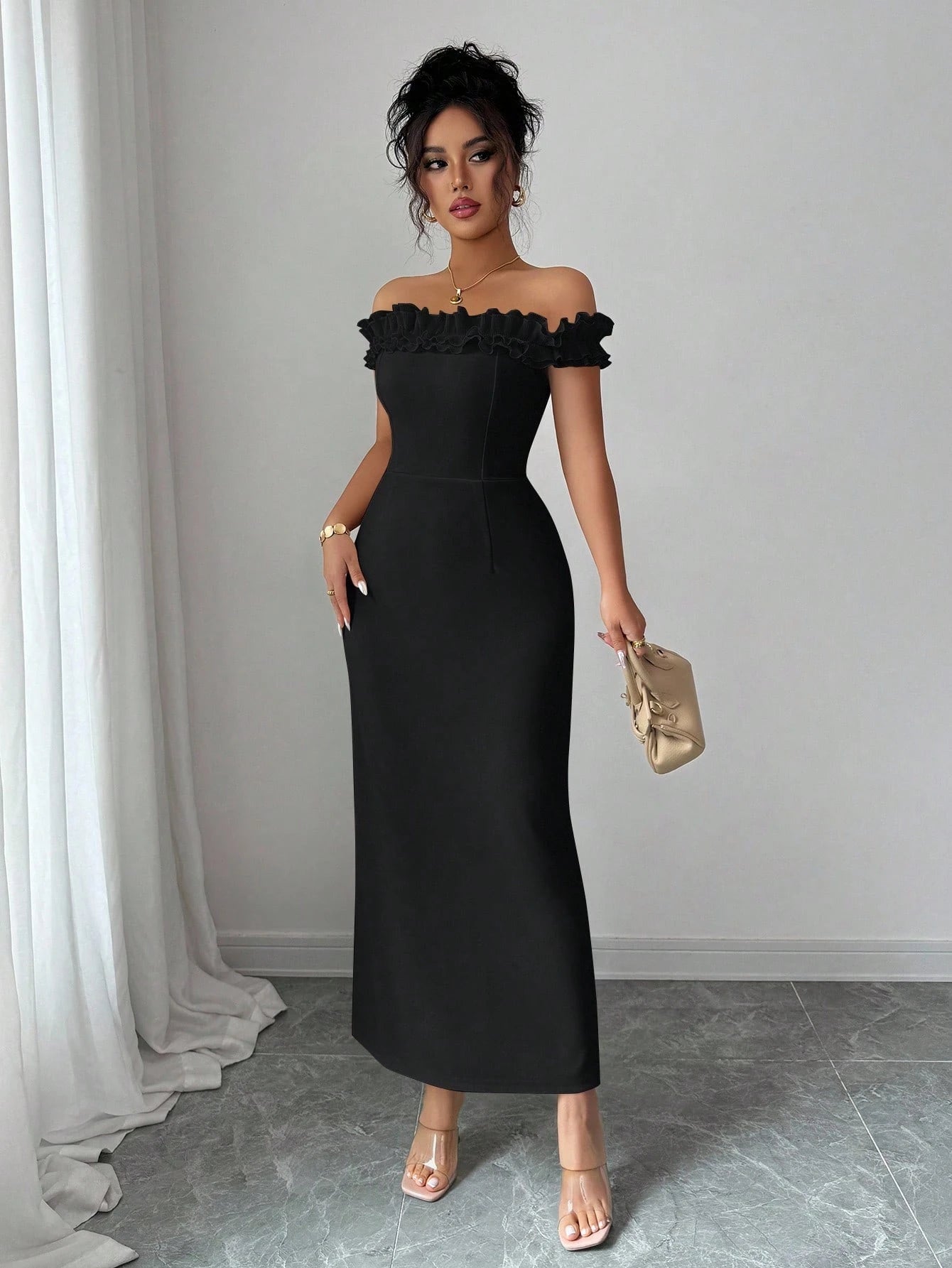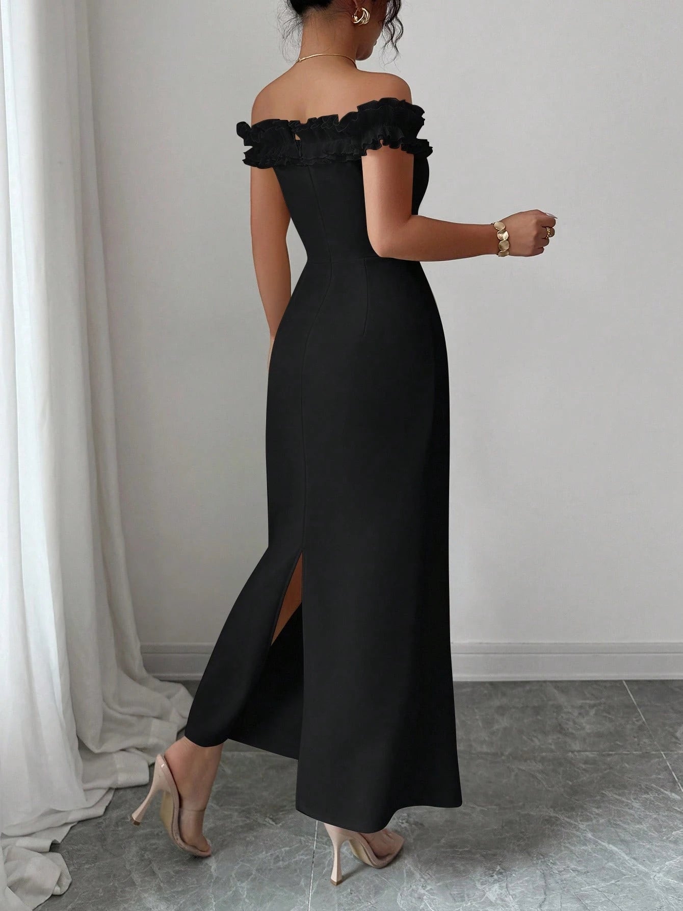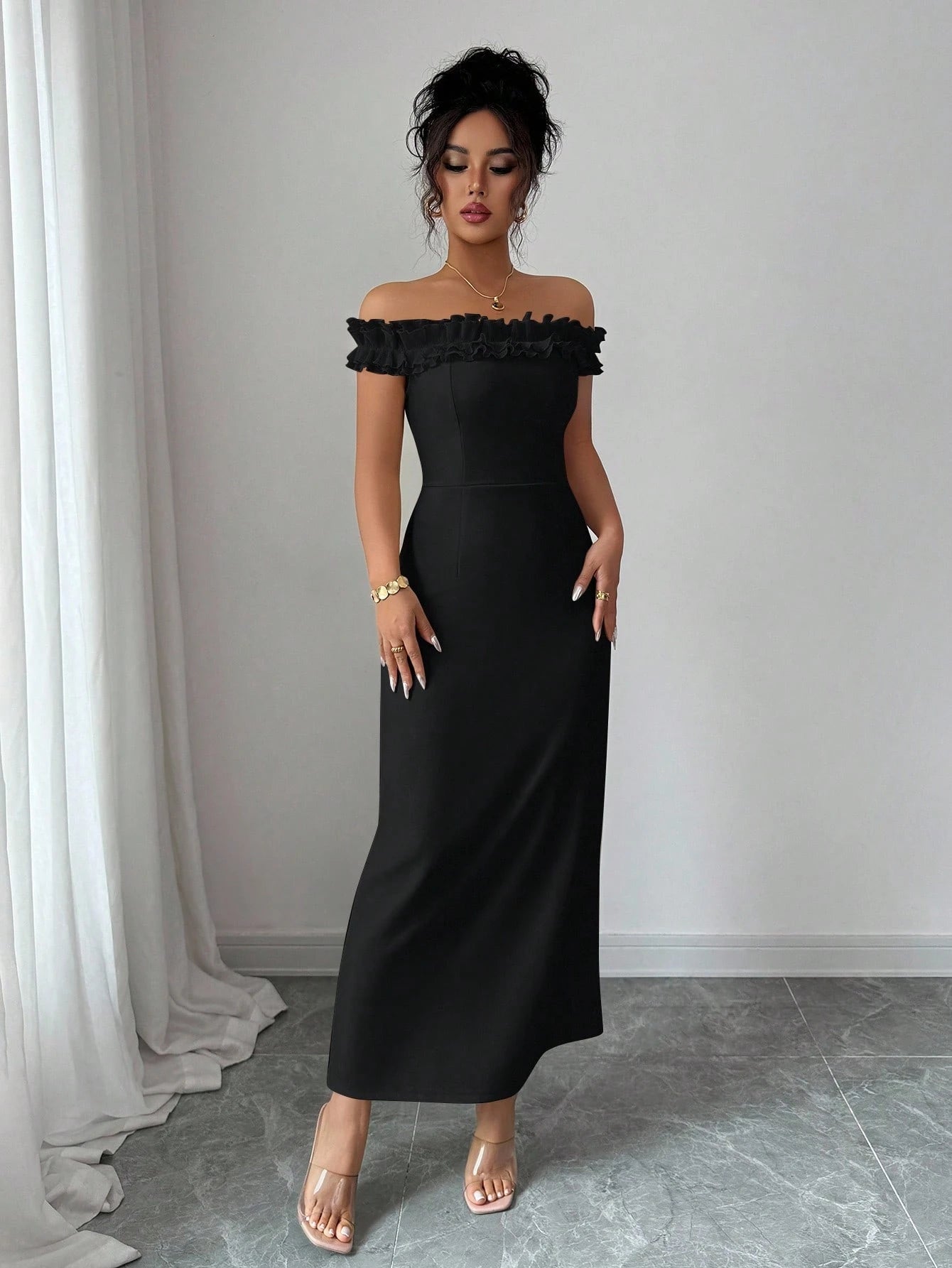 MAXI WITH DROPPED SHOULDERS AND RUFFLES