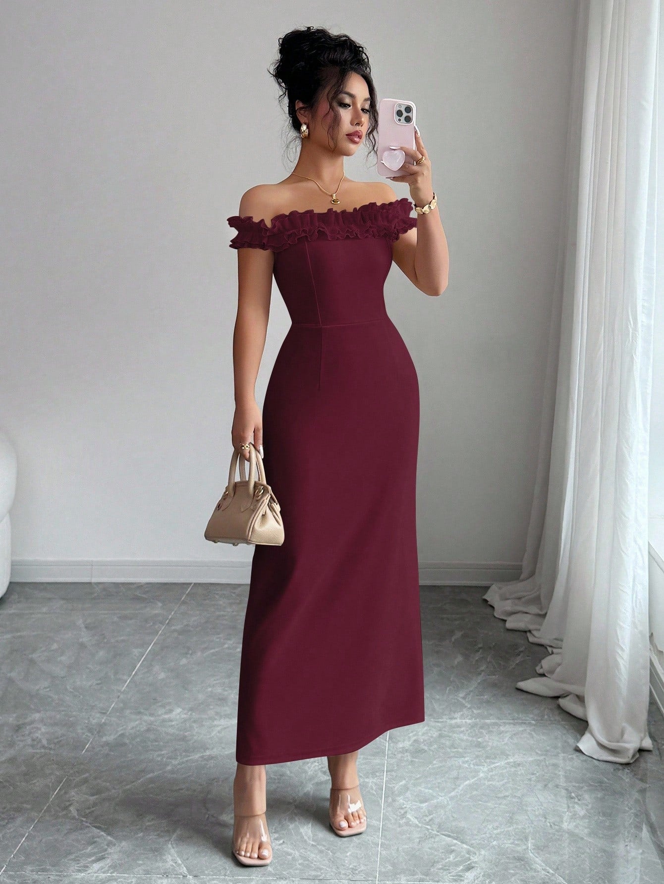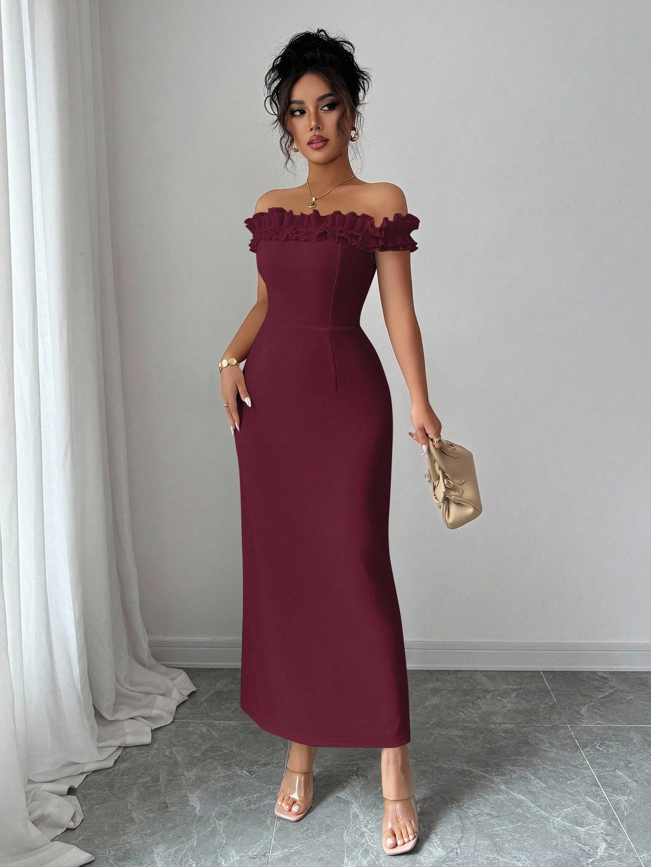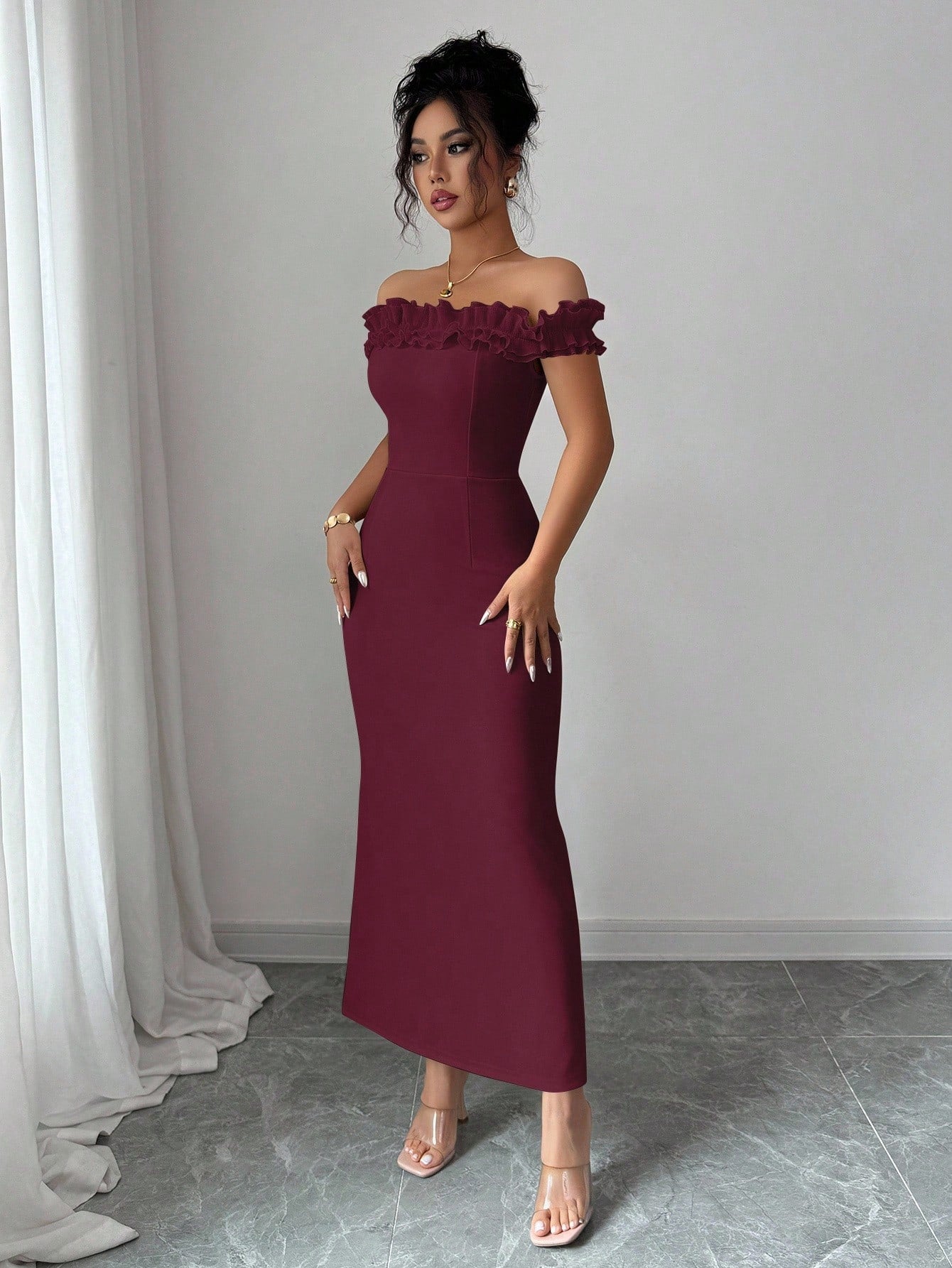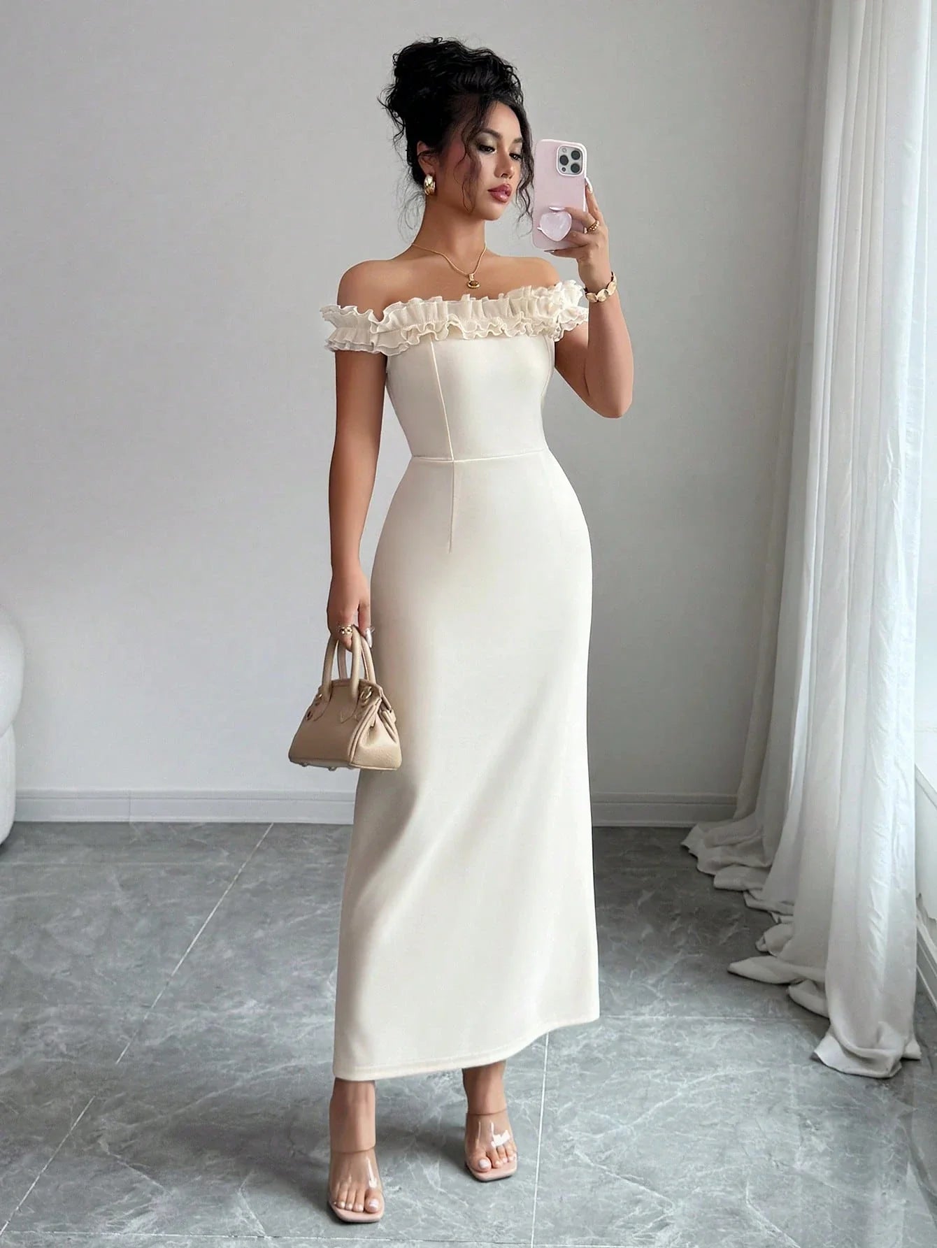 MAXI WITH DROPPED SHOULDERS AND RUFFLES