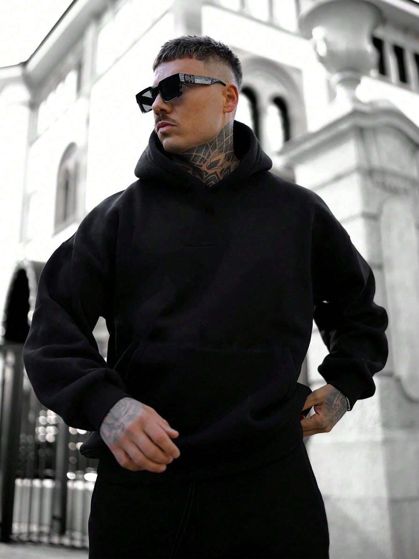 MEN KANGAROO POCKET DROP SHOULDER HOODIE