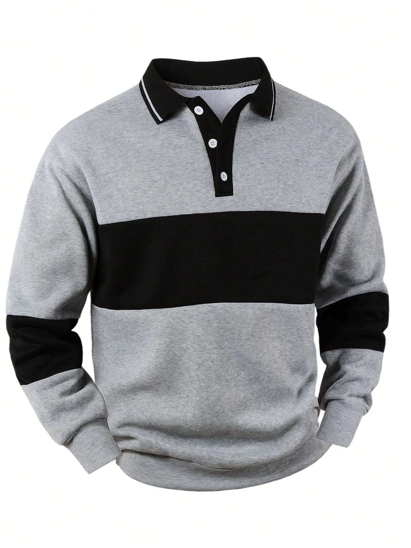 MEN'S BUTTON-UP LONG SLEEVE STRIPED PULLOVER SWEATSHIRT