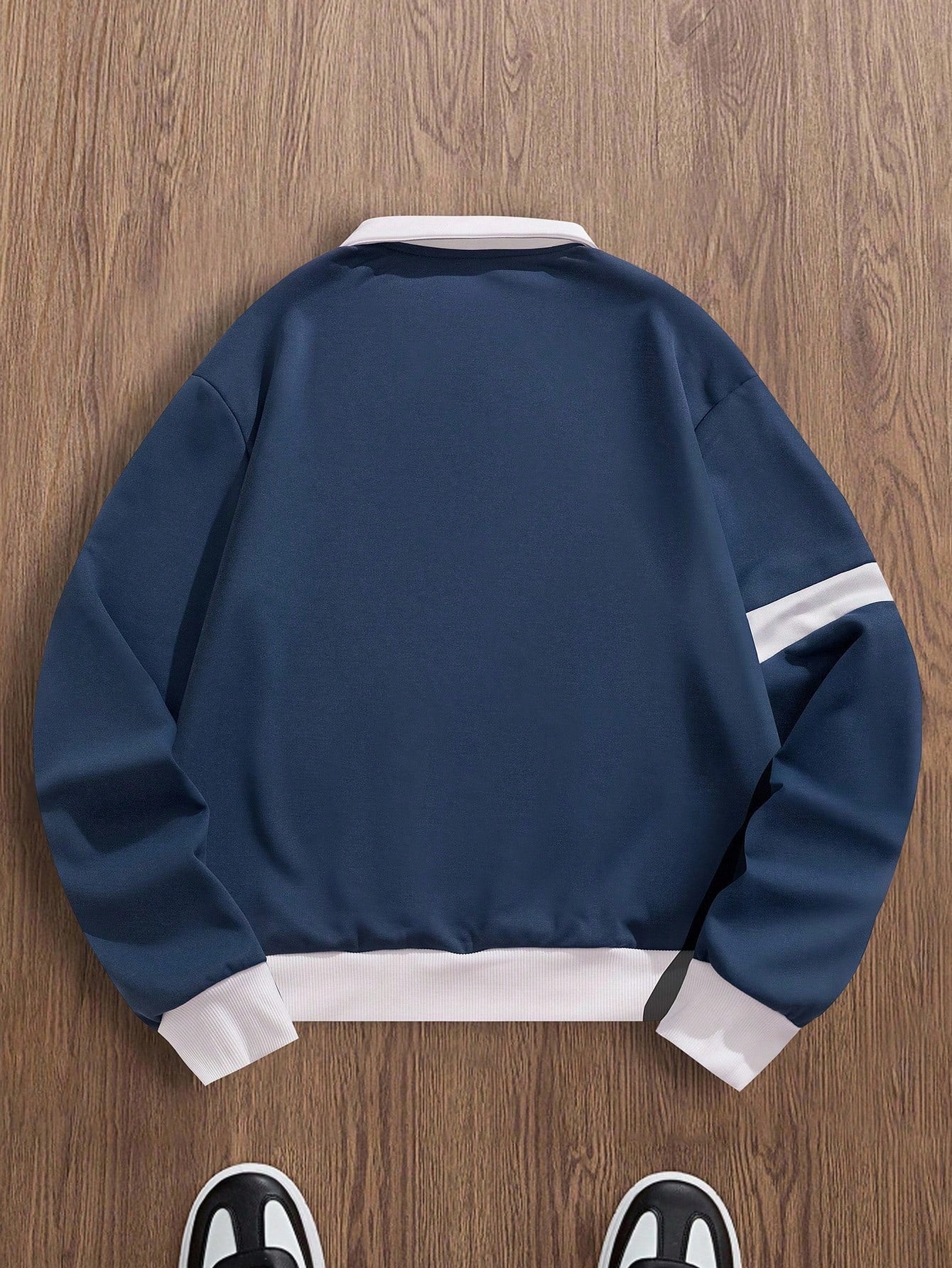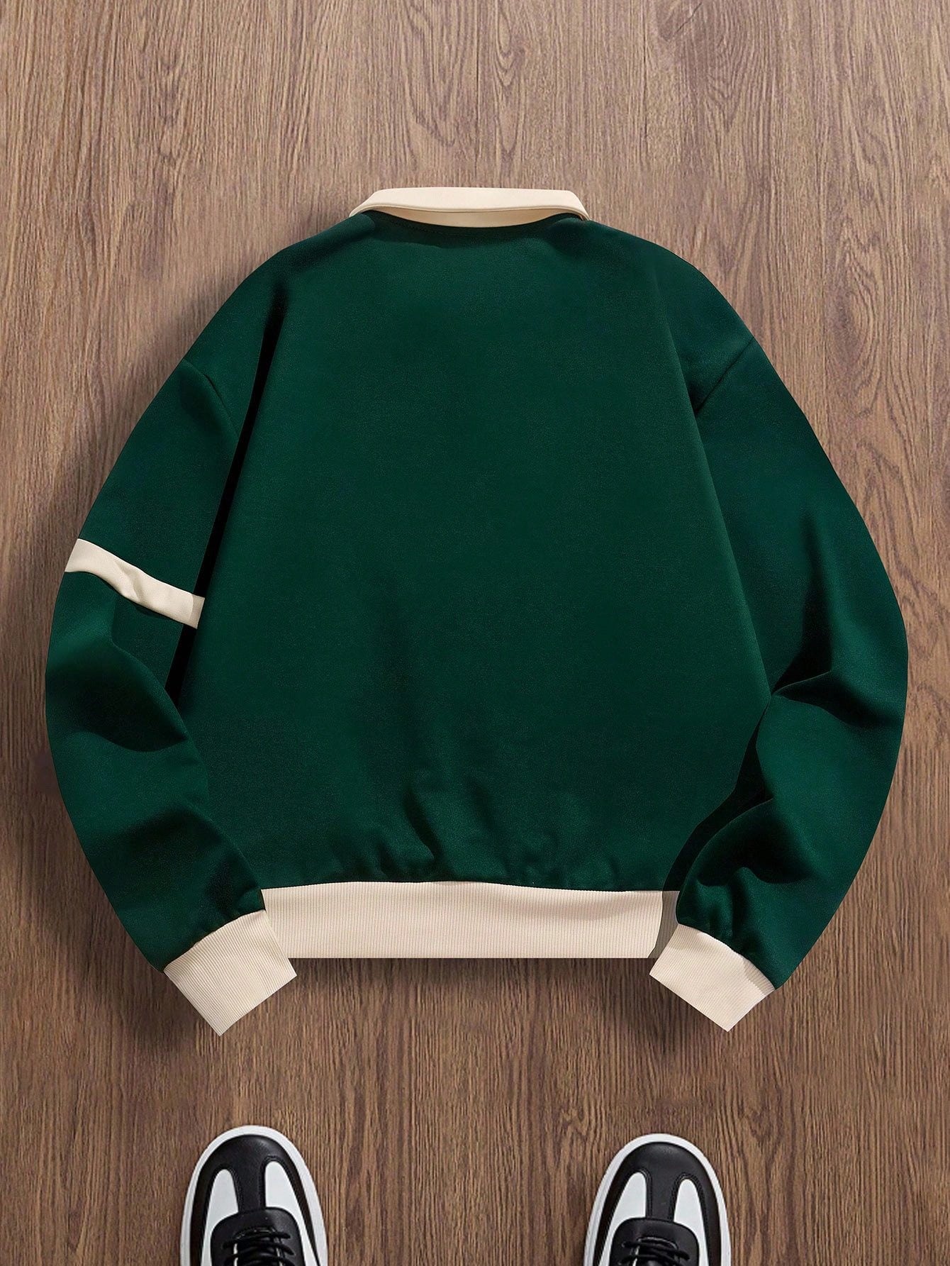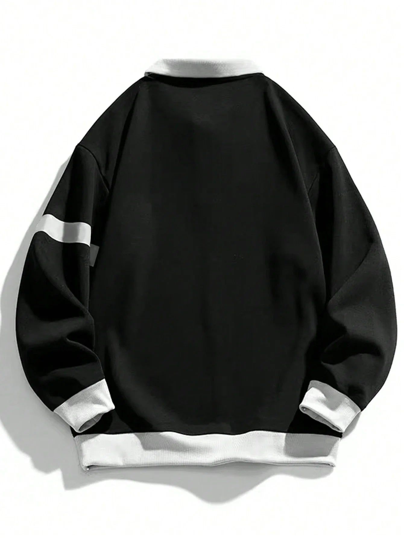 MEN'S CONTRAST COLORBLOCK COLLAR LONG SLEEVE HALF-ZIP SWEATSHIRT