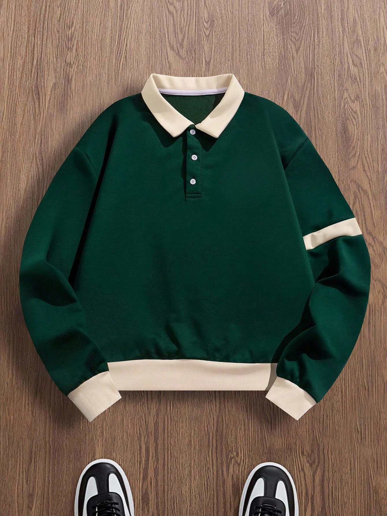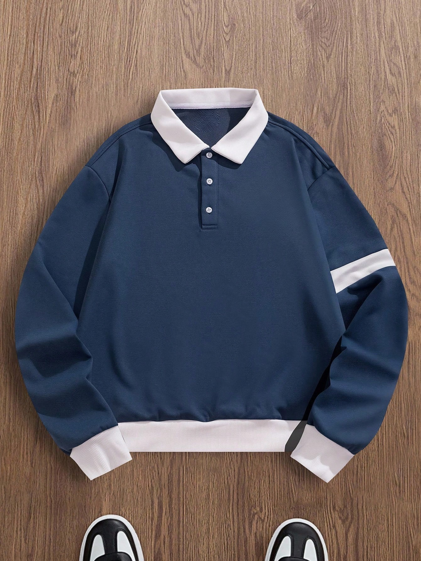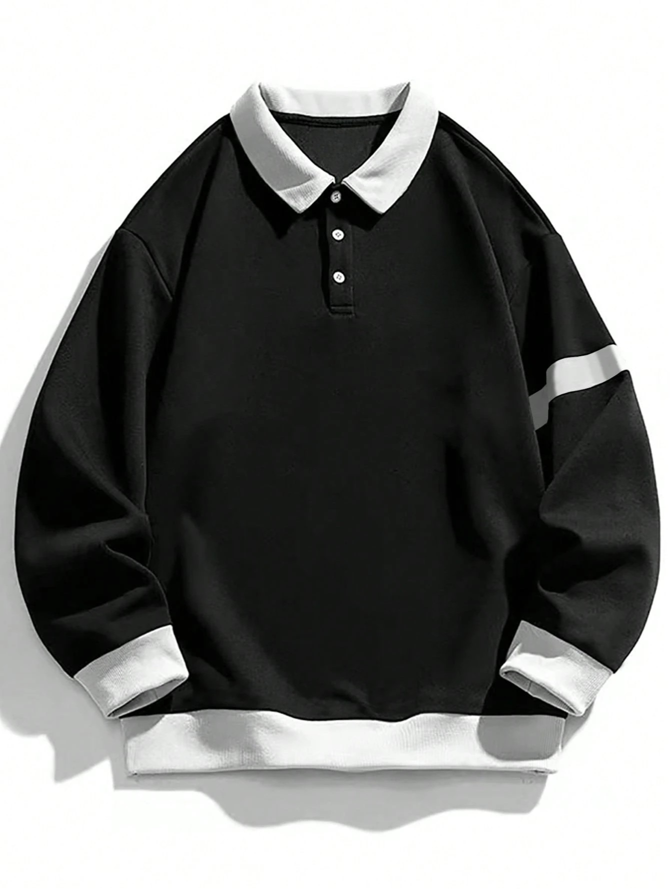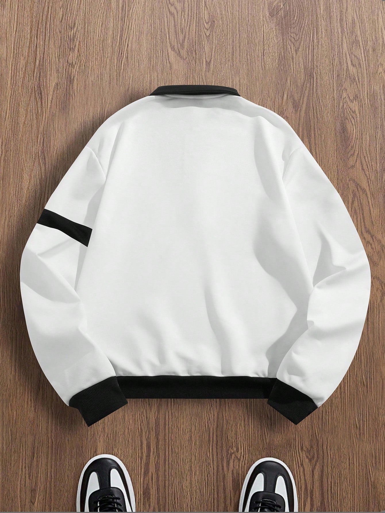 MEN'S CONTRAST COLORBLOCK COLLAR LONG SLEEVE HALF-ZIP SWEATSHIRT