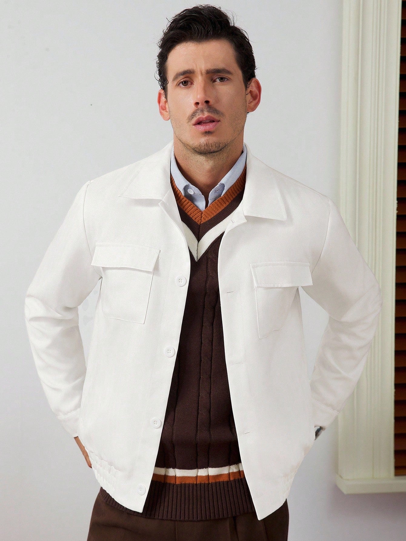 MEN'S SOLID COLOR LONG SLEEVE CASUAL JACKET