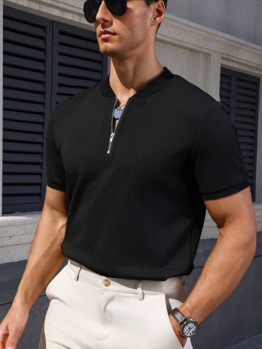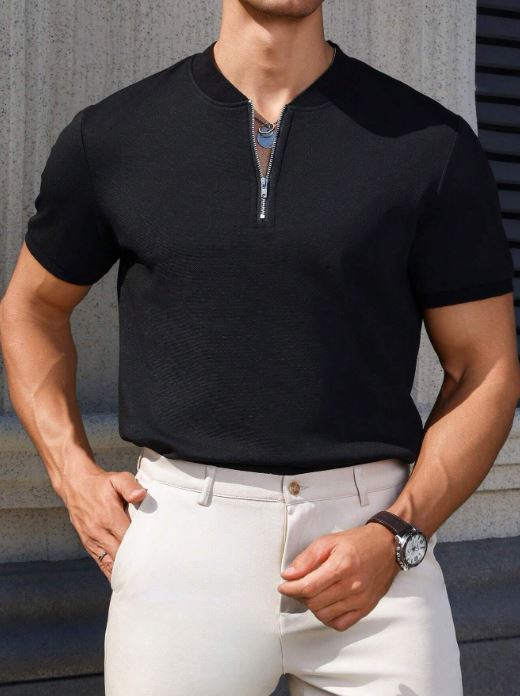 MEN'S SOLID COLOR ZIPPER FRONT POLO SHIRT