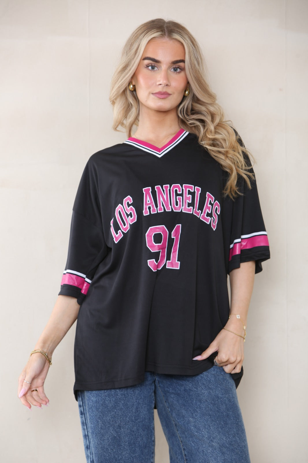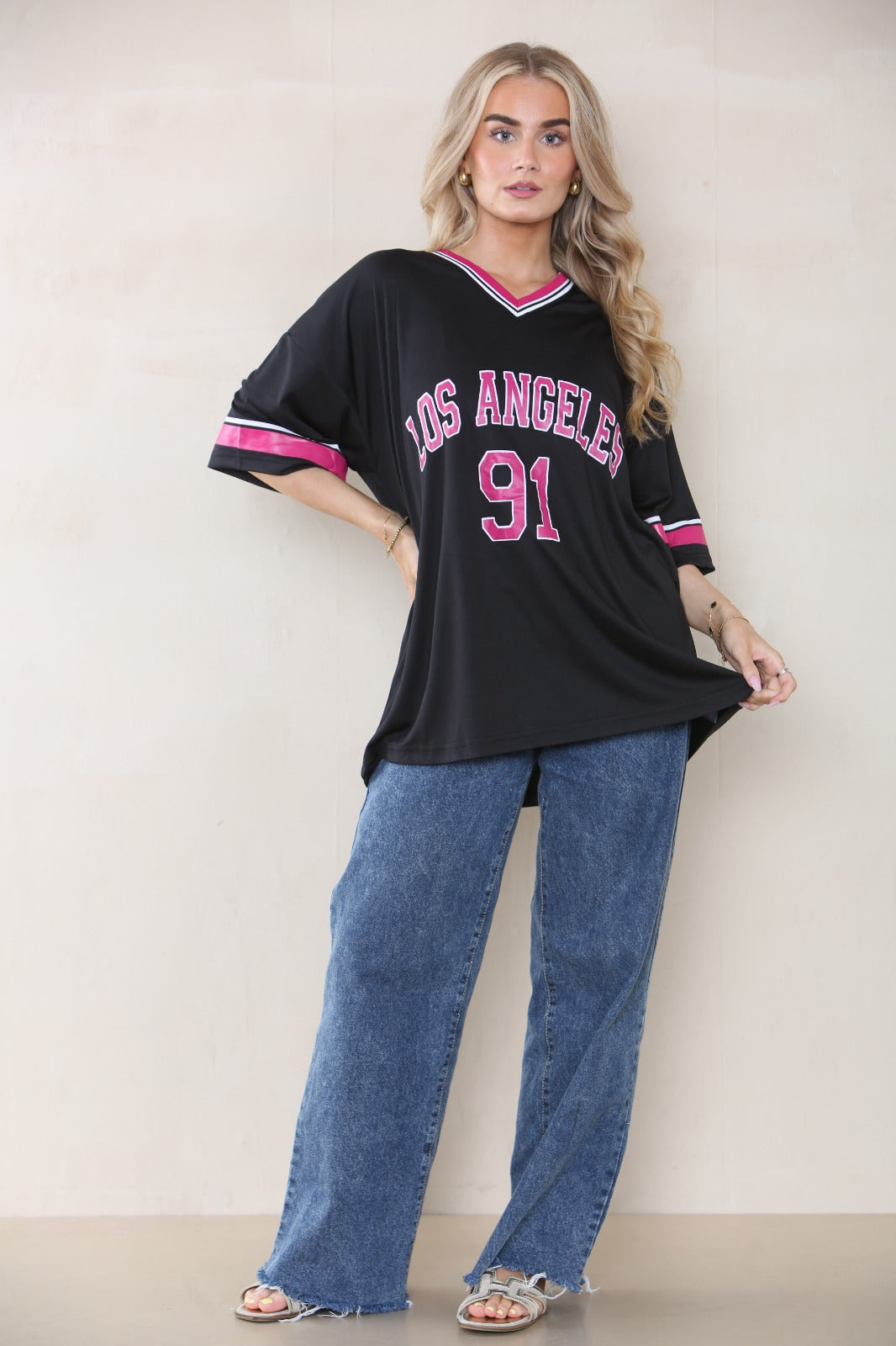 OVERSIZED LA 91 LOS ANGELES PRINT T-SHIRT COLLEGE TEE