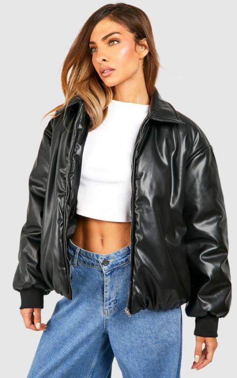 PADDED FAUX LEATHER BOMBER JACKET