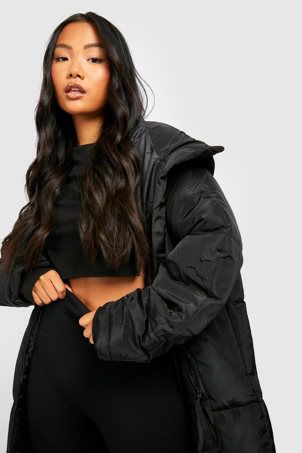 HOODED LONGLINE PUFFER JACKET-BLACK
