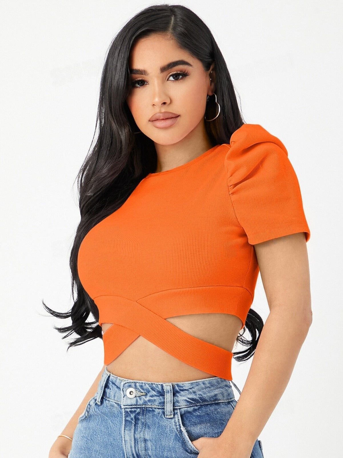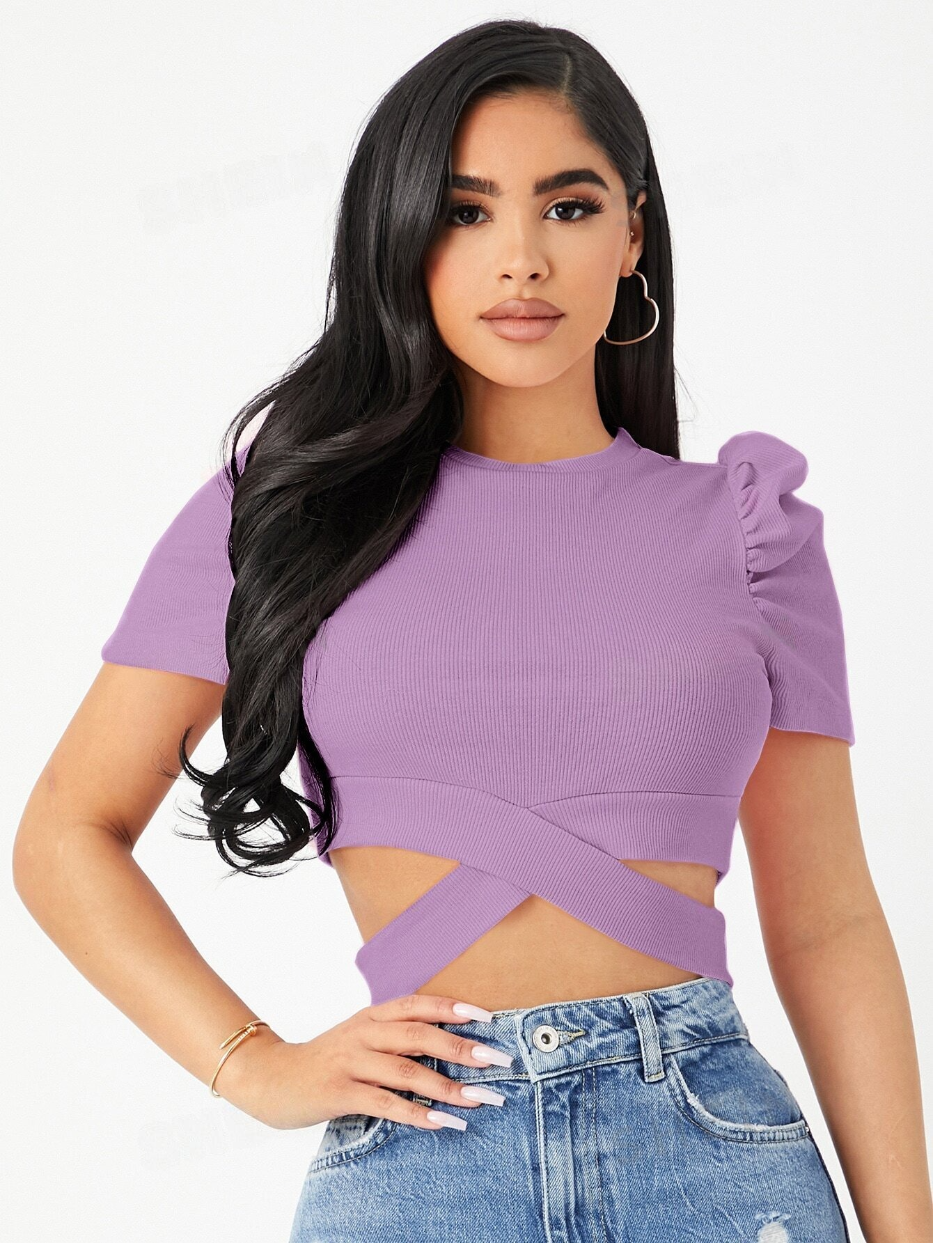 PUFF SLEEVE CRISSCROSS HEM CROP TEE