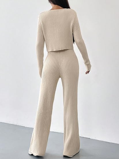 • Feature: long sleeve, rib knit, workout sets pant and top, 2 piece lounge set, sweater two-piece set