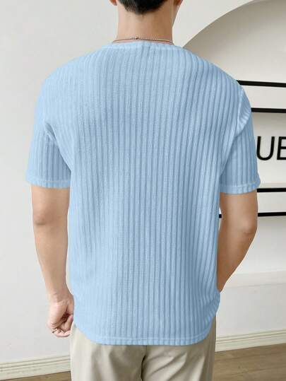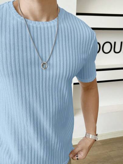 SKY BLUE MEN SOLID RIBBED KNIT TEE