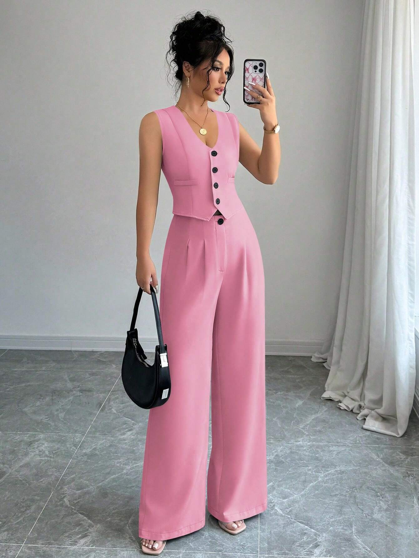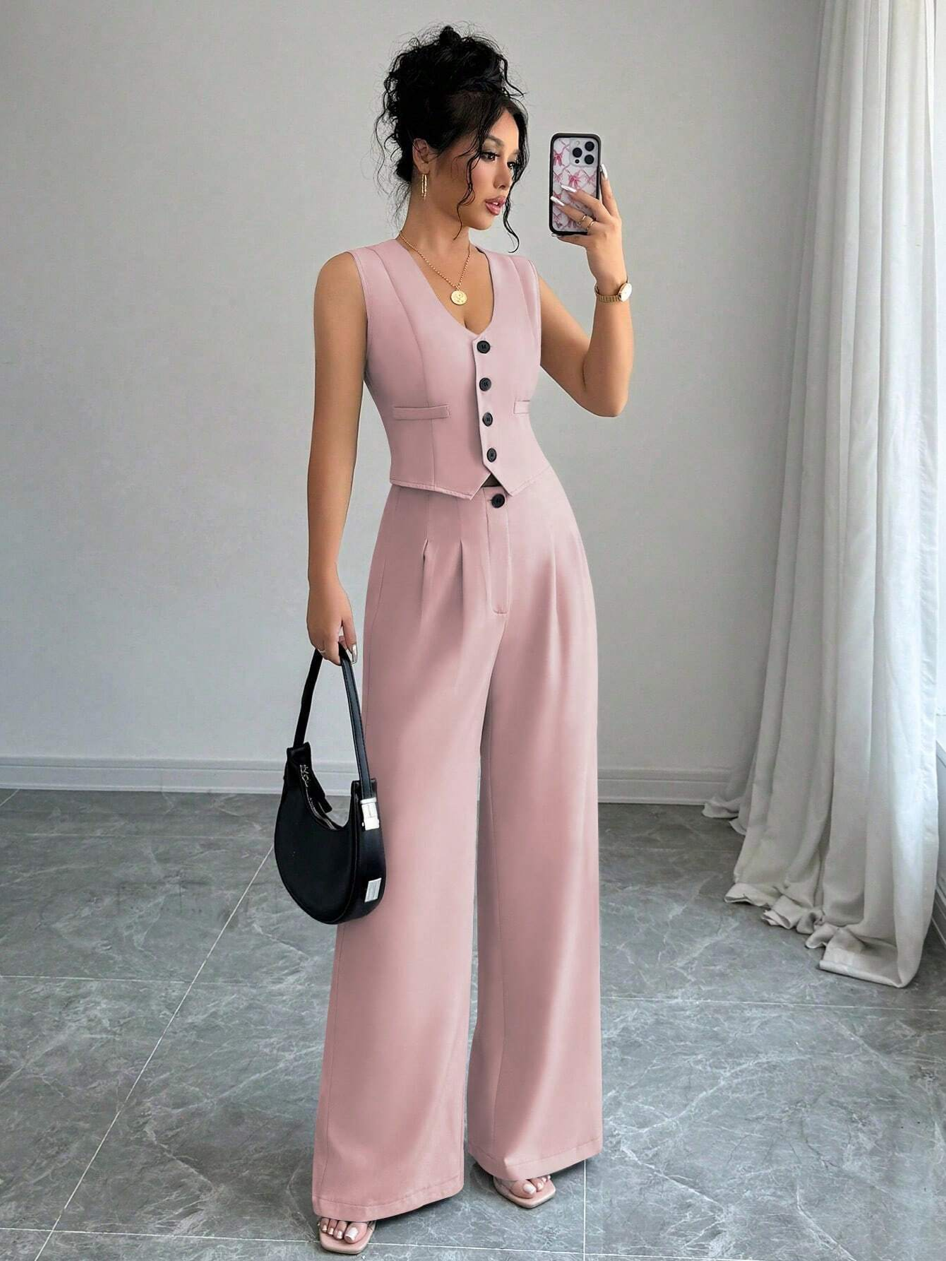 SLEEVELESS BLAZER VEST AND SUIT PANTS SET