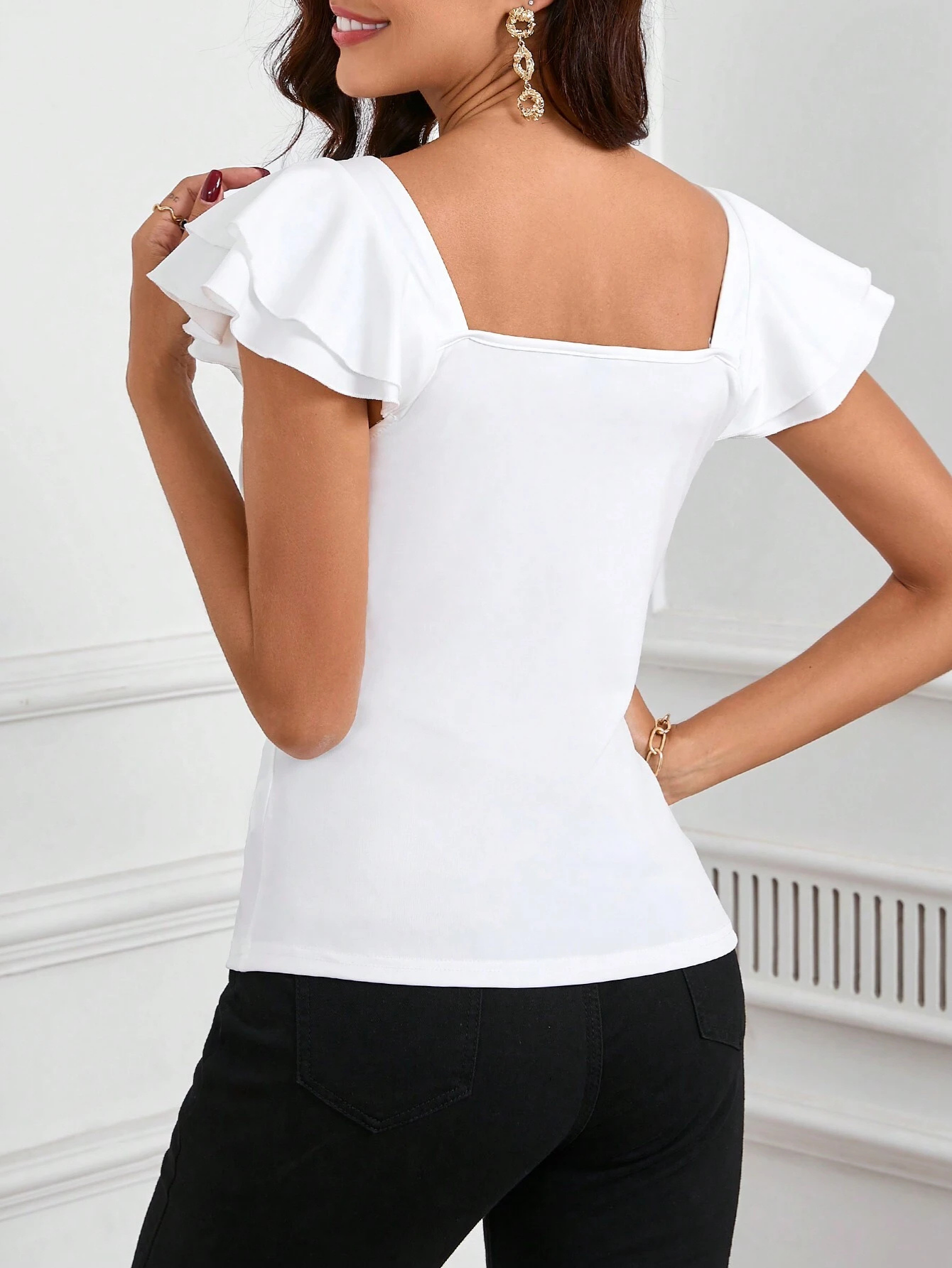 SOLID COLOR SQUARE NECK SHORT SLEEVE CASUAL TOP
