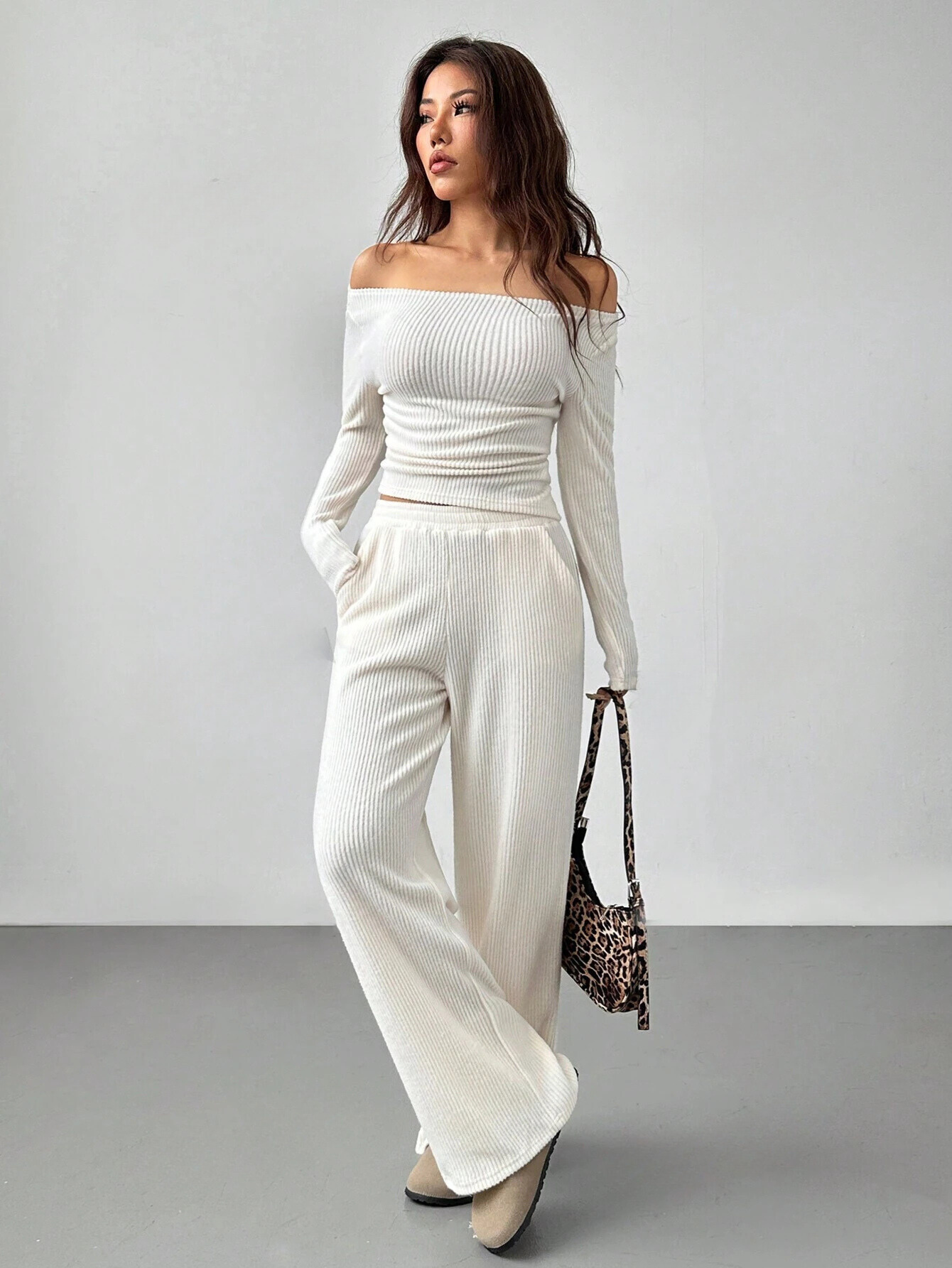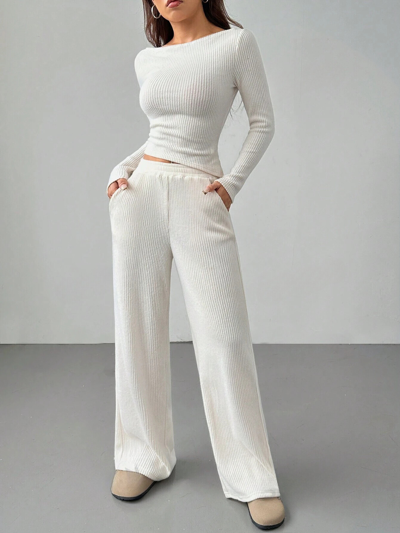 STRIPED KNITTED WOMEN'S TOP & TROUSERS SET