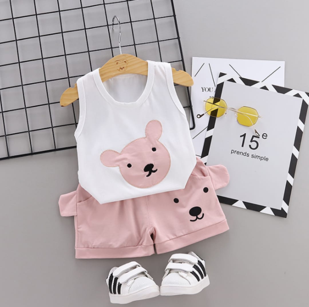 Find out the 2024 Summer new Children Cotton Cartoon bear pattern two-piece vest + shorts (pink) here, part of our latest Baby Boy Sets ready to sale online today!