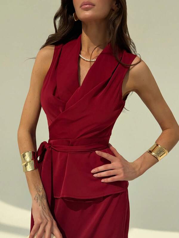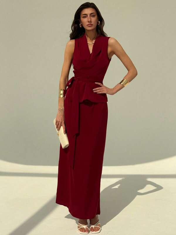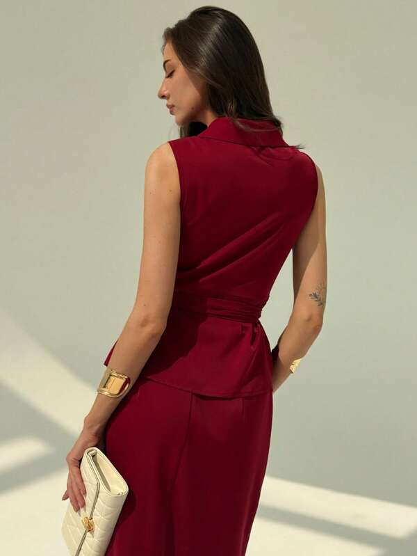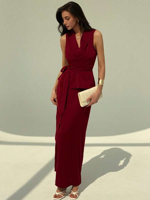 Women's Elegant Solid Color Wrap Camisole And Skirt