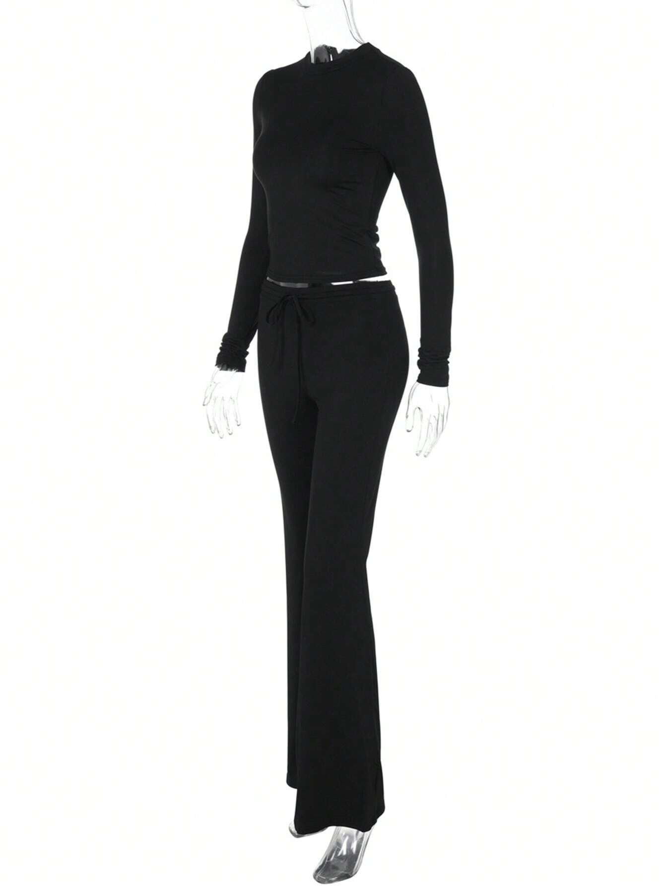 WOMEN'S LONG-SLEEVED TOPS, SLIM-FITTING LACE-UP FLARED PANTS SPORTS SUIT