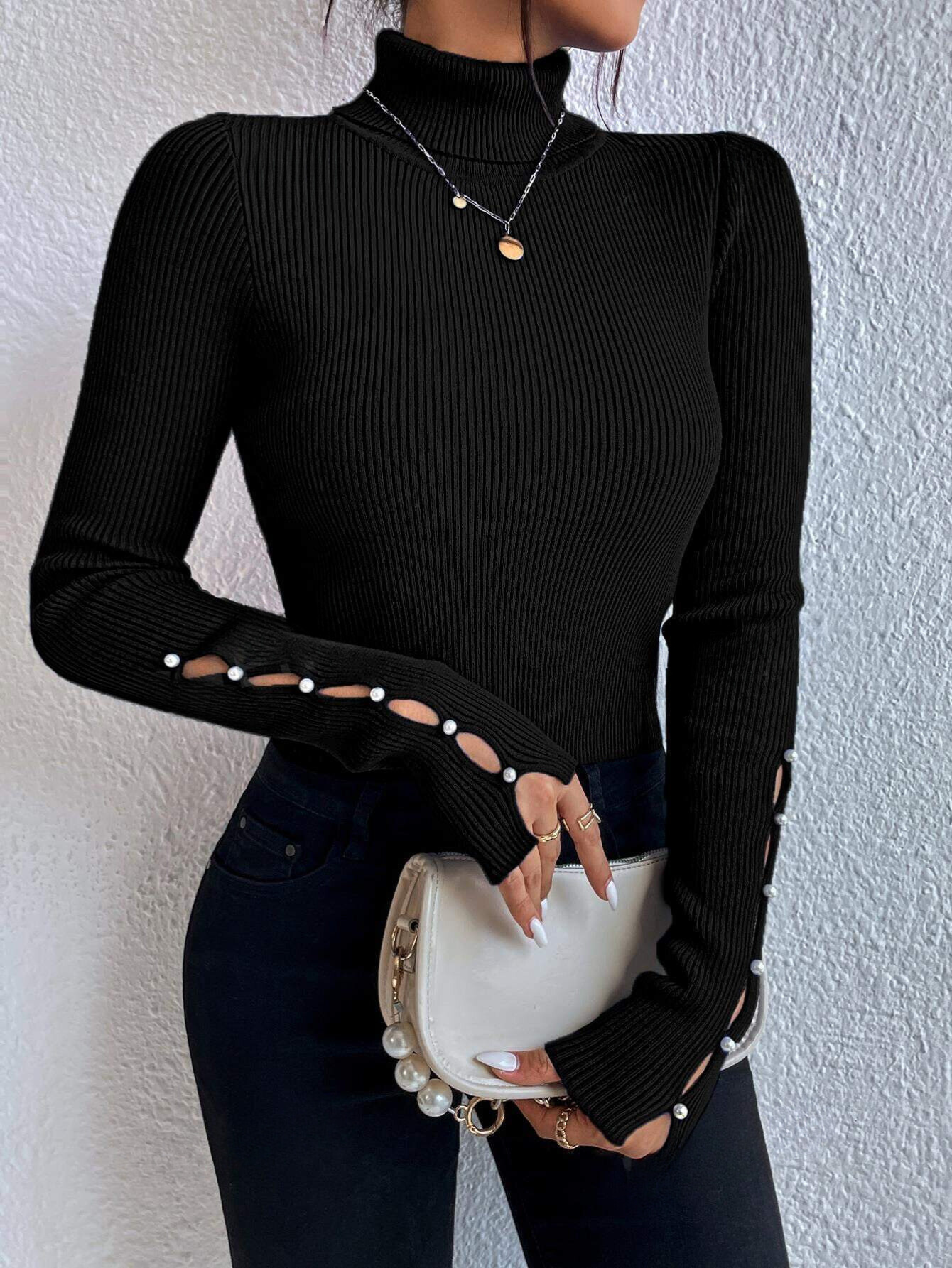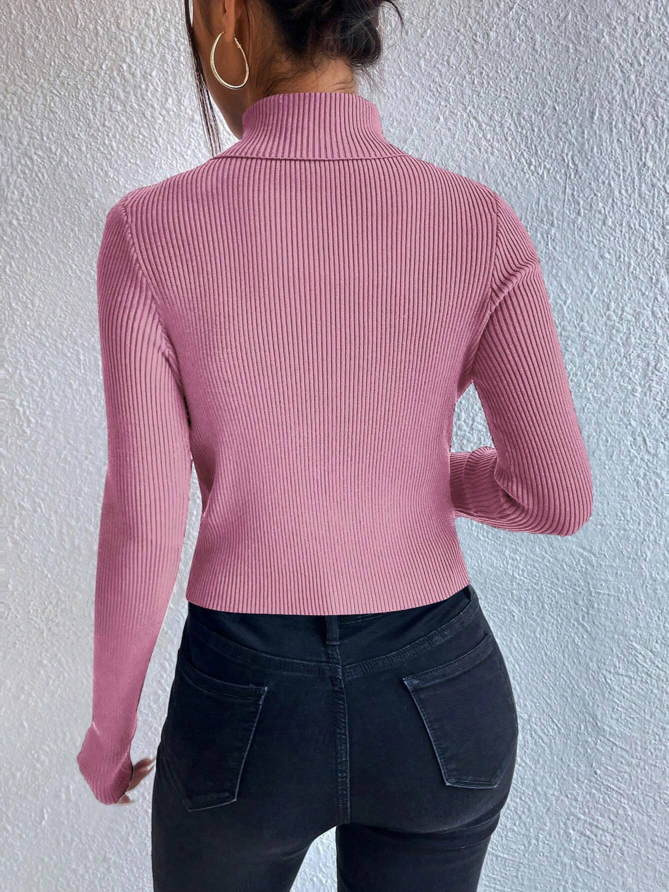 WOMEN'S SOLID COLOR MINIMALIST CREW NECK LONG SLEEVE SWEATER