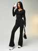 WOMEN'S SOLID COLOR ZIP-UP DRAWSTRING HOODED SHIRT AND FLARED PANTS SET