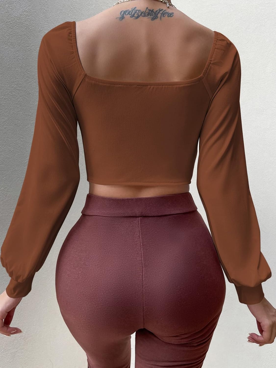 WOMEN'S SUMMER TOP SWEETHEART NECK LANTERN SLEEVE CROP TOP