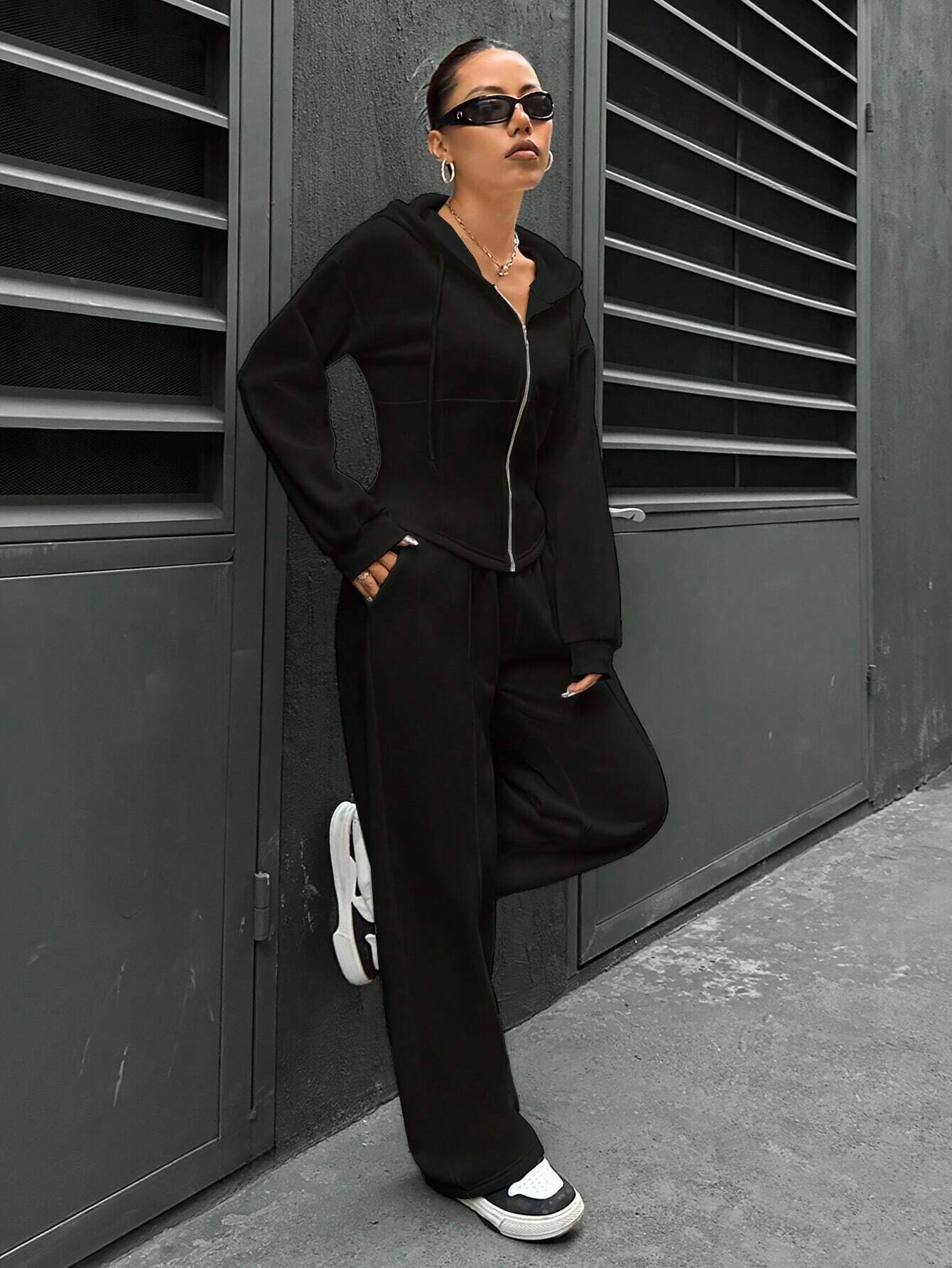 WOMEN'S ZIP-UP HOODED TOP AND PANTS SET