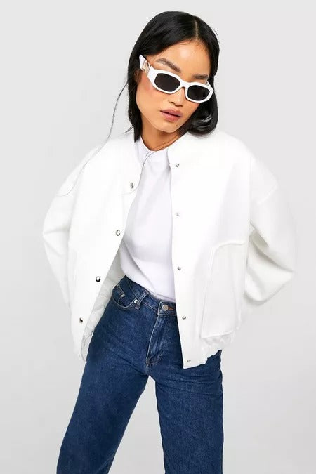 WOOL LOOK OVERSIZED BOMBER JACKET WHITE